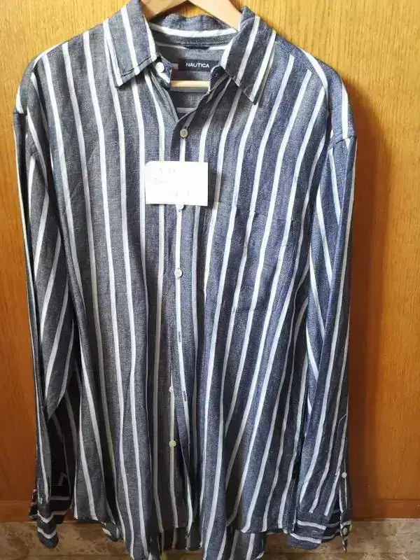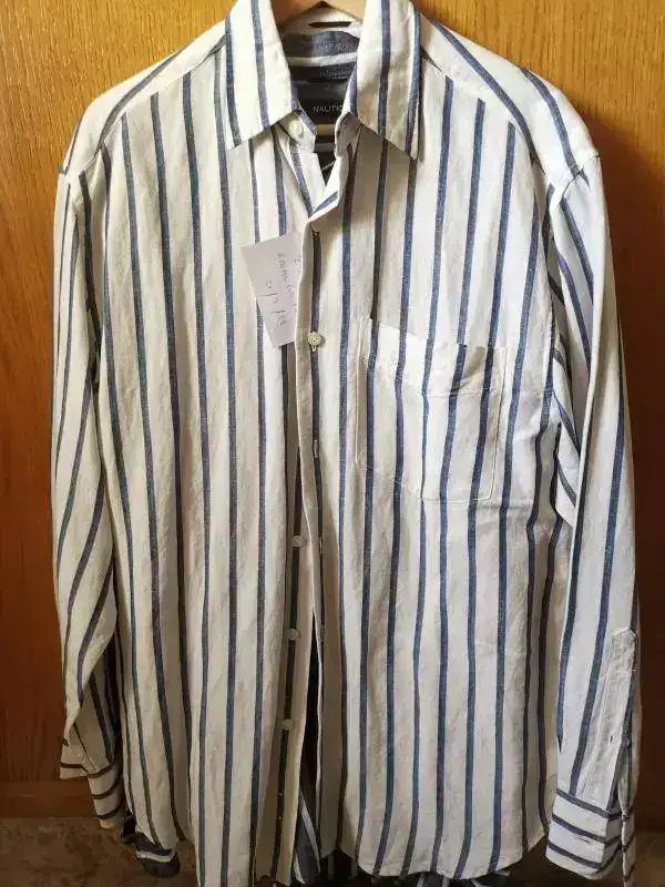 6-Nautica blanca a rayas. m/l. Lino y rayon. Talla M americana,L europea ó 16 y medio. 25 euros.