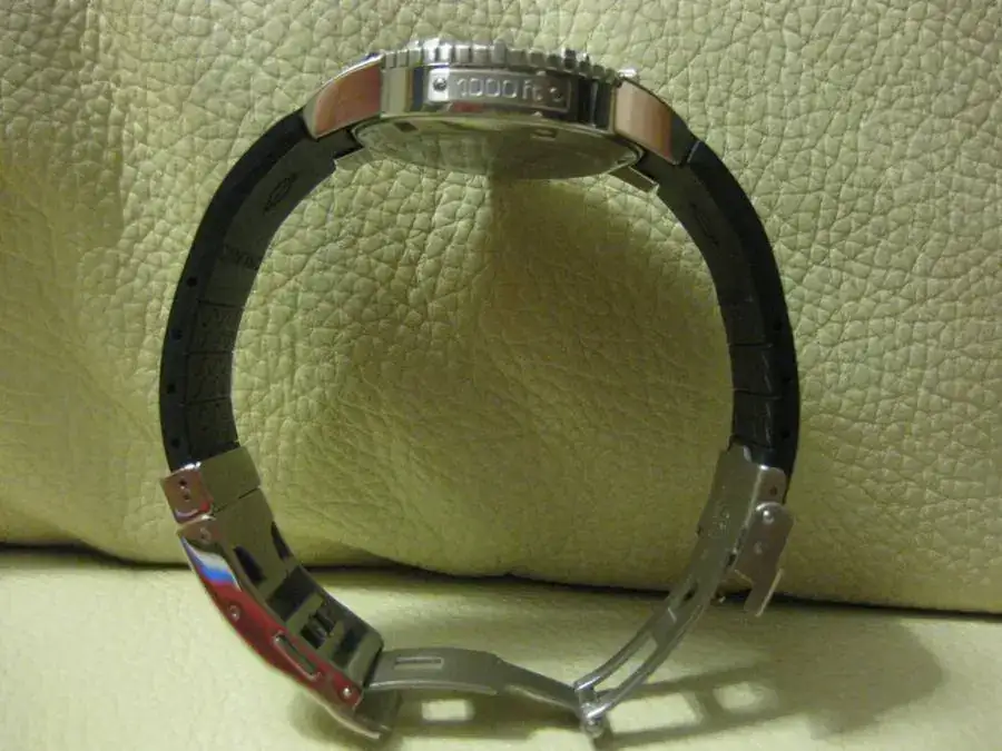 Correa de caucho con cierre deployante con extensión para buceo. NOTA:La correa está cortada para una muñeca de 17-17.5 cm aprox. de diámetro.