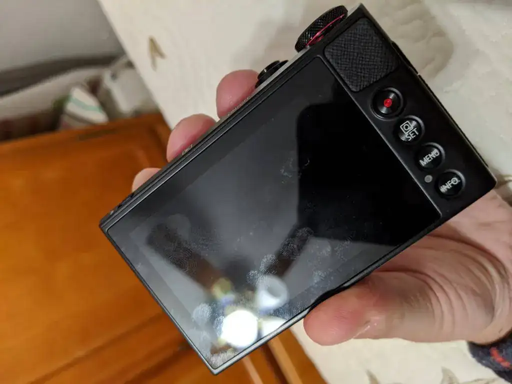 Vendo cámara Canon G9X, en un estado magnífico. Sin arañazos o golpes, suelo tratar mis cosas con mucho cuidado. Es una compacta avanzada con sensor de una pulgada. Se entrega cámara con su batería y funda de lona bastante utilizada pero usables. También incluyo tarjeta de memoria. No cuento con su caja o cargador aunque se utiliza cualquier cargador USB como el empleado en los teléfonos móviles. Su precio 165 euros con envío MRW 24 horas incluido.