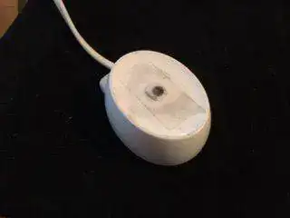 No hay muchos "destripes" del cargador en internet, pero sí del cepillo, y me daba en la nariz que el soporte central en forma de pico no contenía la bobina así que utilicé una herramienta de precisión quirúrgica para extraer la protuberancia que alejaba el dial del reloj a la base de carga en sí.