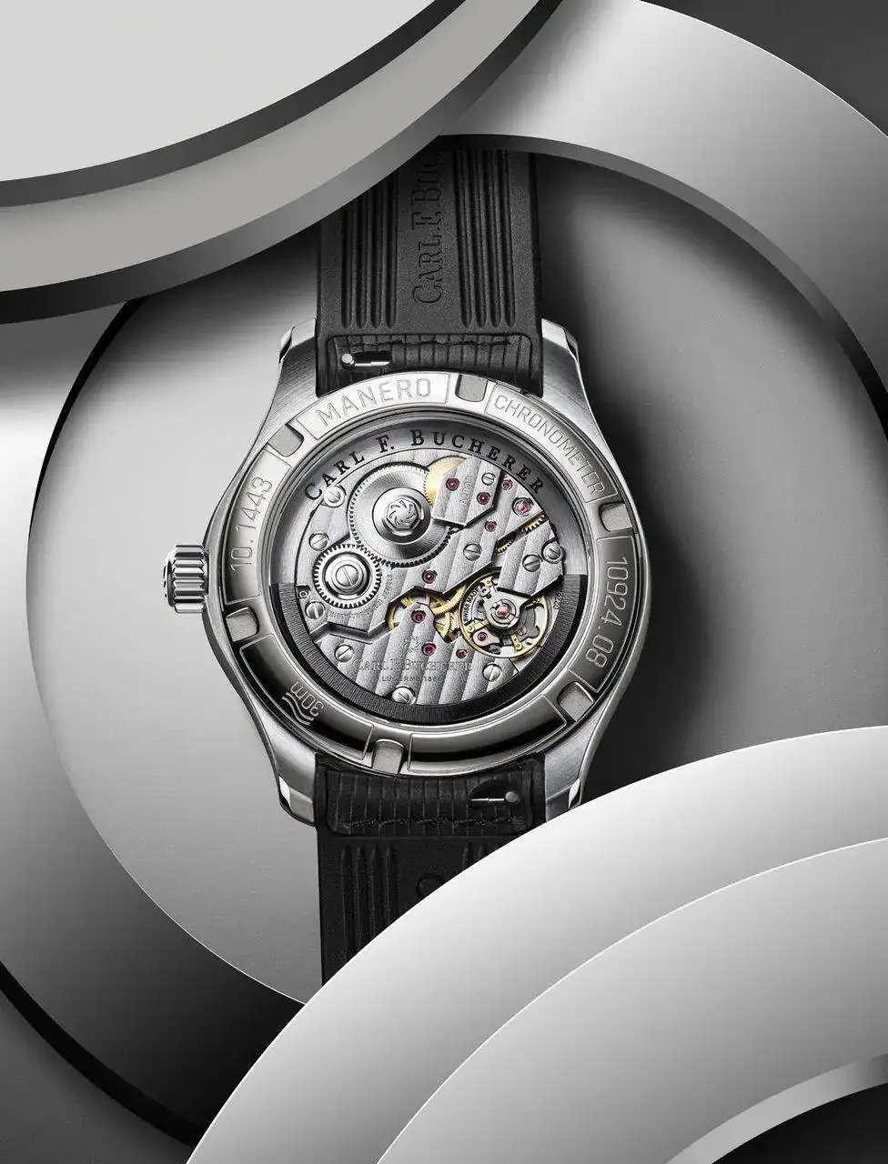 El movimiento es el calibre automático suizo Carl F. Buchered CFB A2050 con 33 joyas, 28.800 vph y una reserva de marcha de 55 horas. Está certificado por COSC como cronómetro. Las funciones son: horas, minutos, segundos pequeños y fecha.