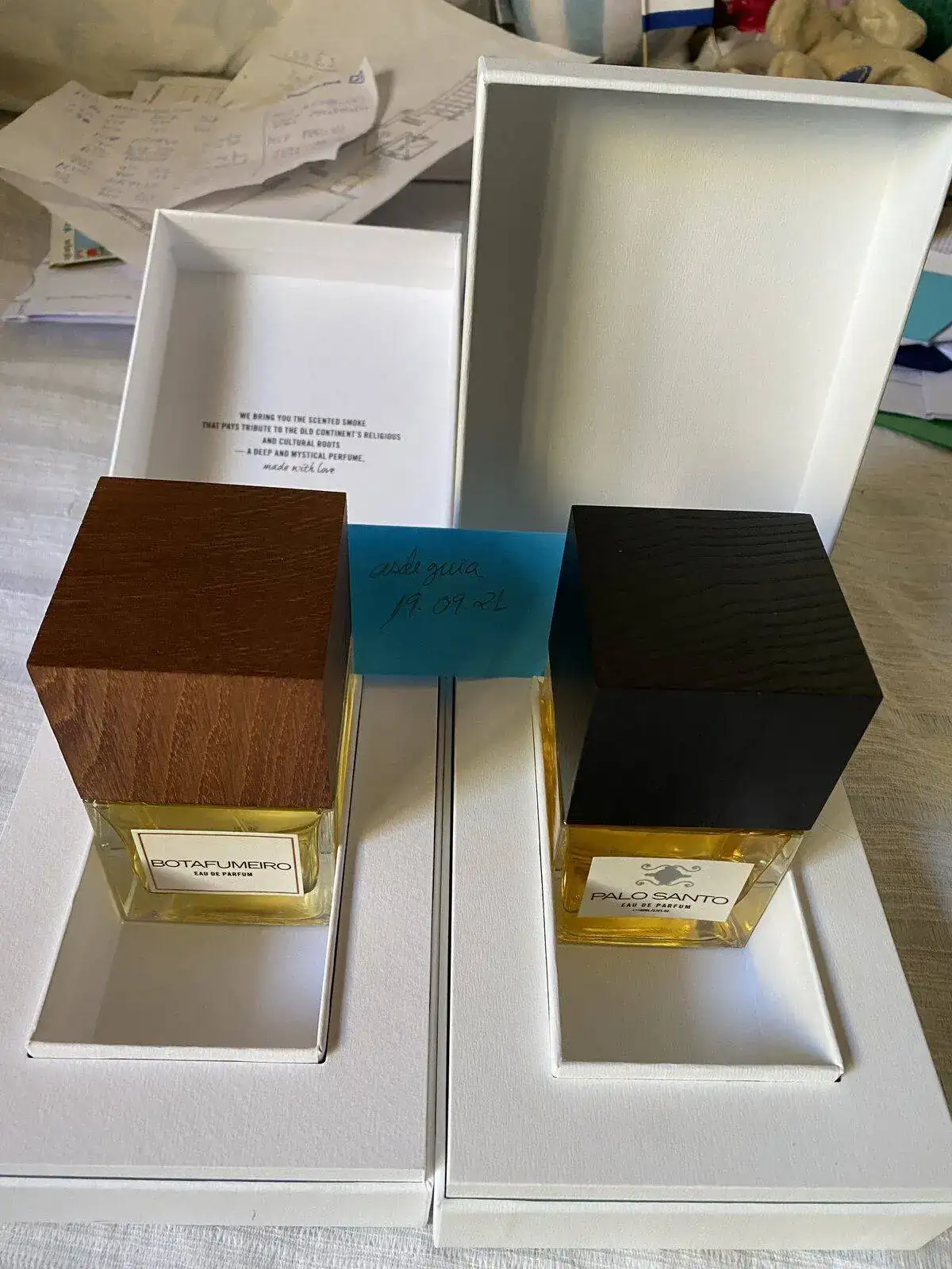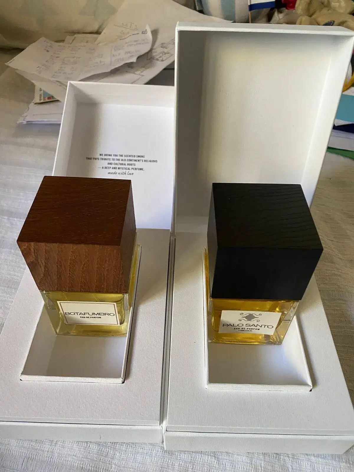 Palo Santo lleva ron abrotano, maderas, haba tonKa, vainilla. El aroma es licor, maderas ahumadas, vainilla, es ideal para otoño invierno y es fresca no se hace nada pesada