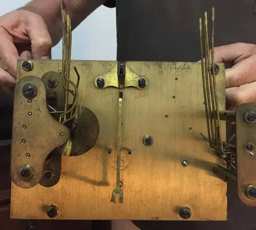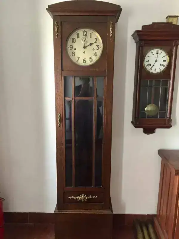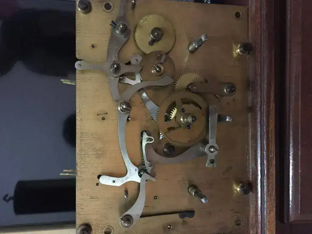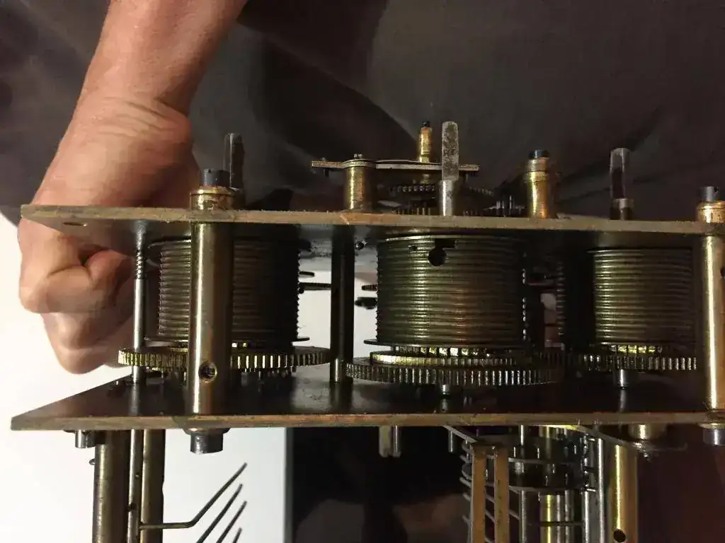 Hola a todos , a mi colección incorporé un reloj carrillon de pie junghans con segundero y las pesas con sistema de poleas , que nunca los había visto así. La máquina está para limpiar y poner el hilo . Lo que me llama la atención es el peso de las pesas una está pesando 12 ,800 kilos , otra 8,500 kilos y la otra de 6 kilos. Parecería que son originales del reloj . Si alguien lo conoce o vio alguno me podrían decir si el peso es el correcto? Gs. Saludos. Subo algunas fotos