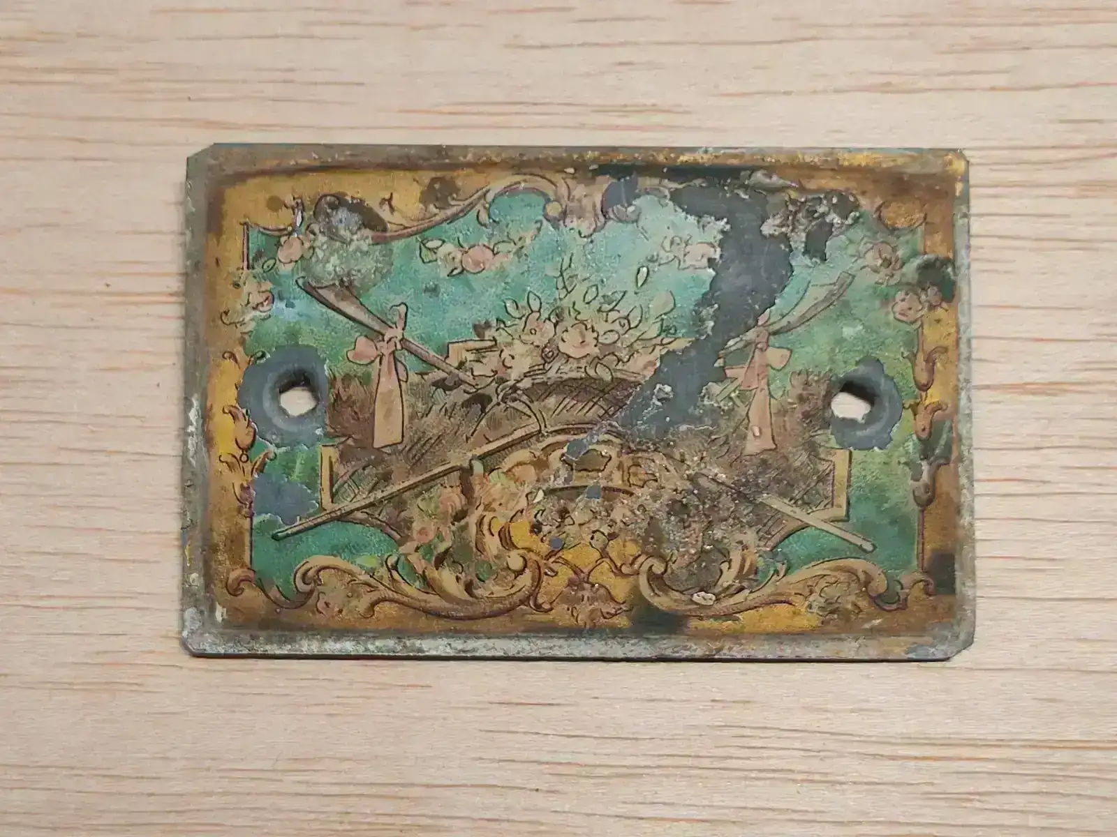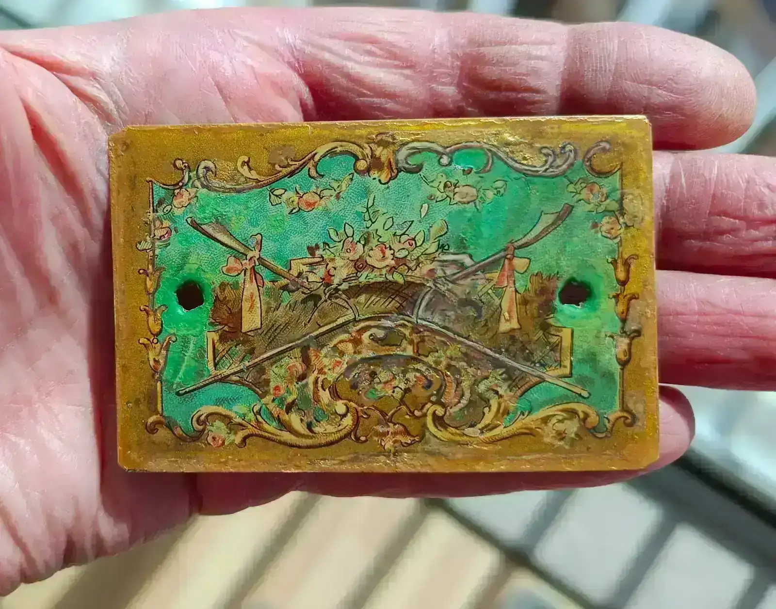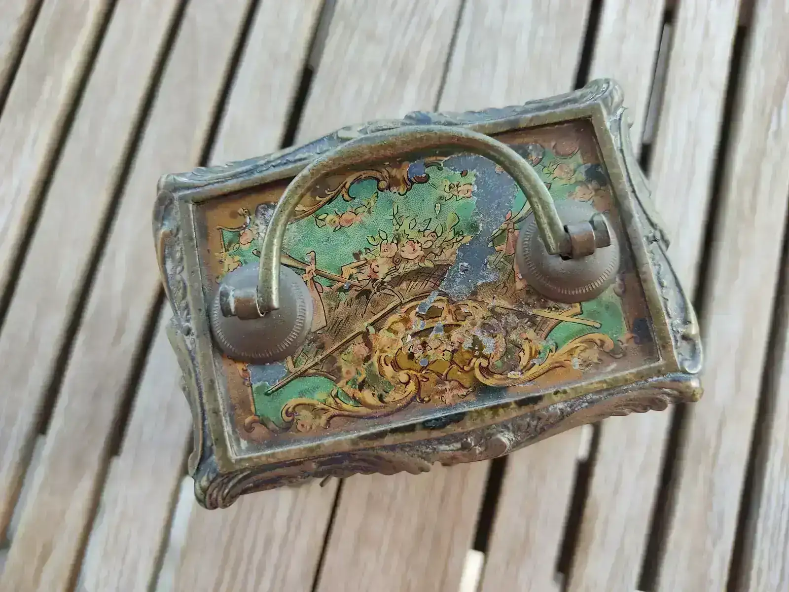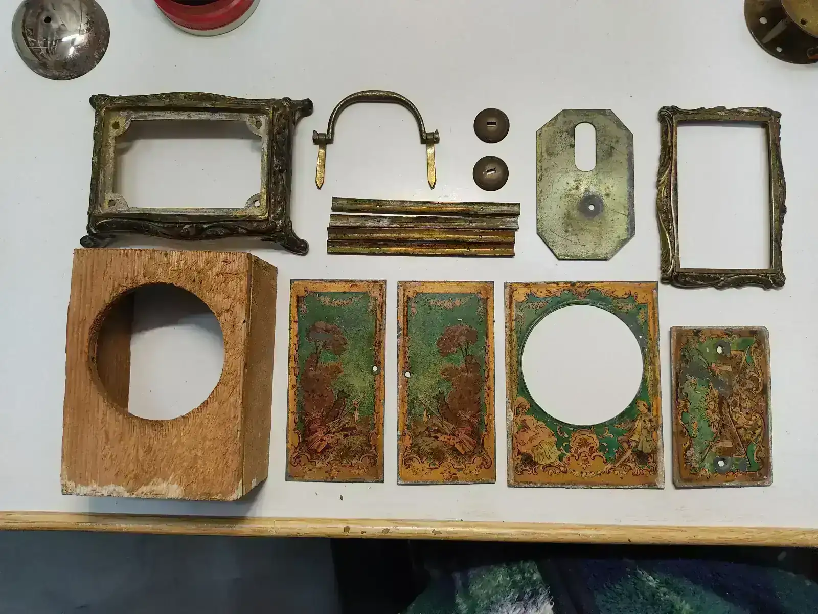 A continuación desmontamos la caja. La restauración de la pintura se ha hecho con colores Vallejo y algo de paciencia. Como protección se le ha dado una capa de cera.