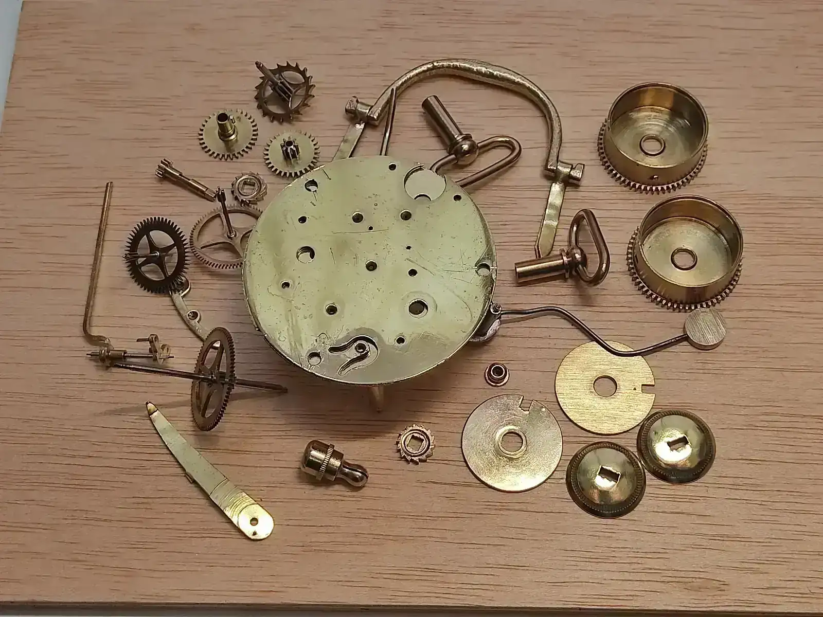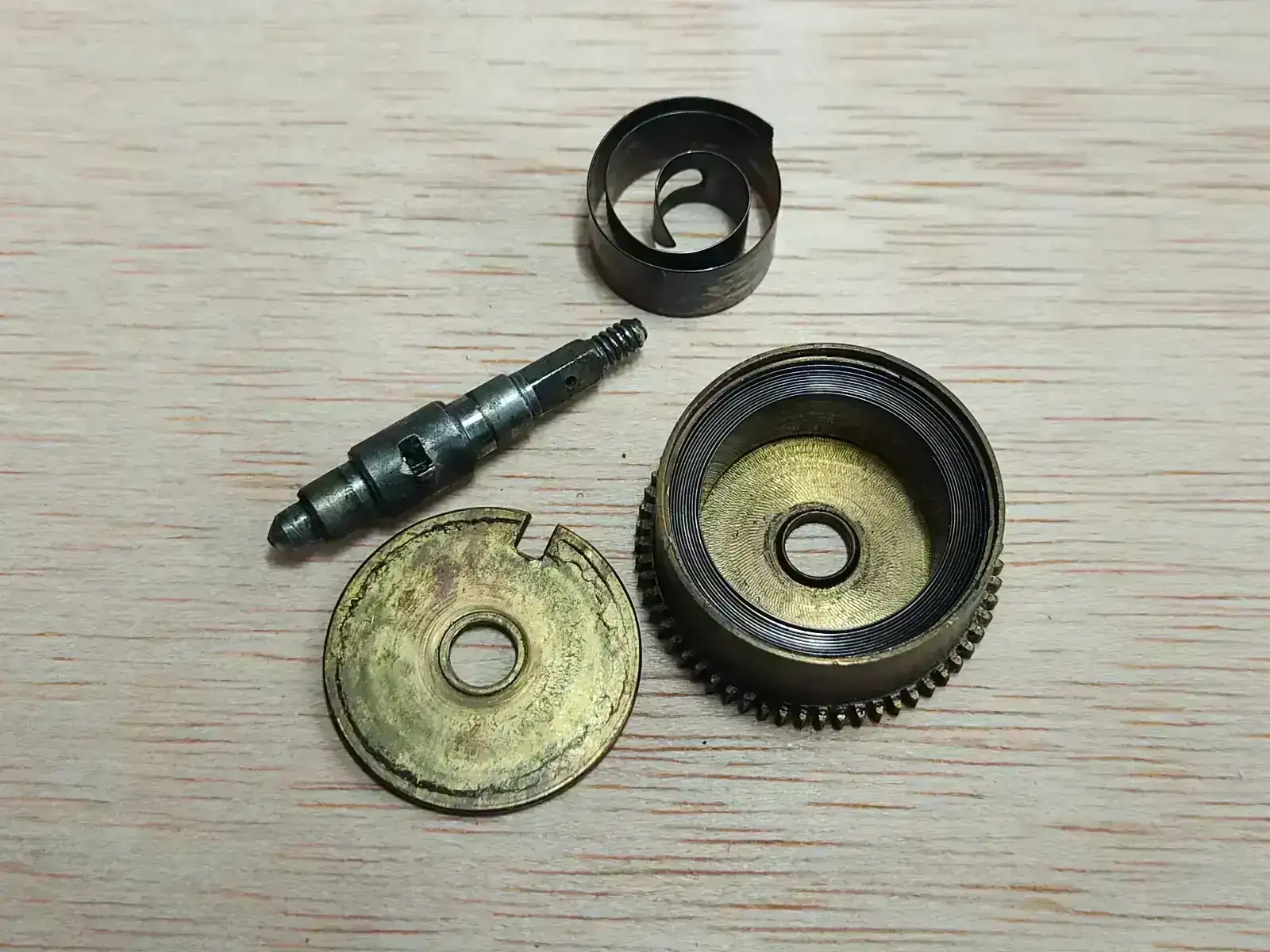 El movimiento despiezado y limpio listo para montar. Puede observarse lo pequeño que es.