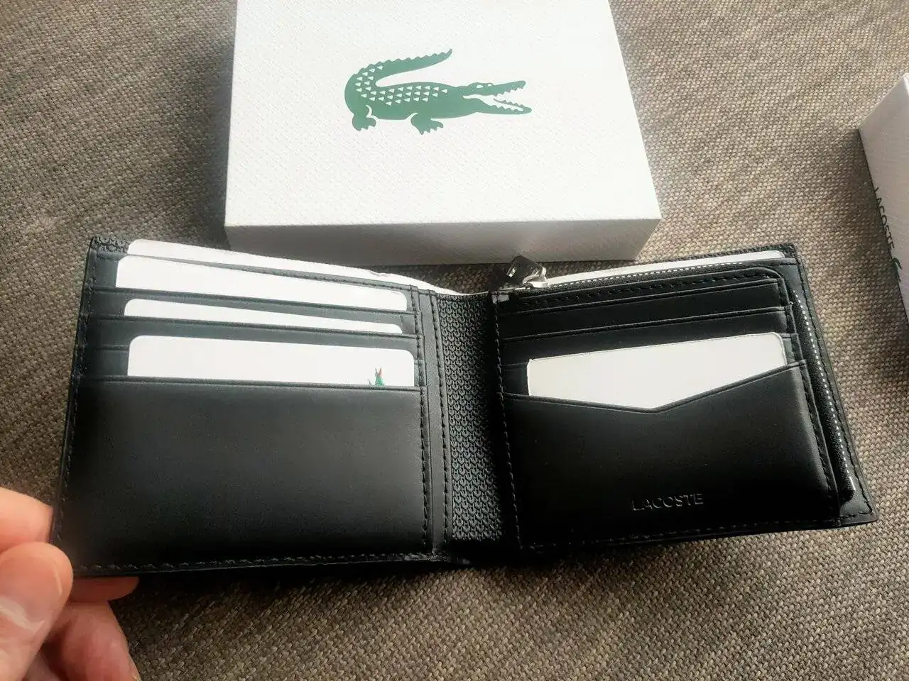 Cartera piel de vaca Lacoste chantaco NH2826CE con herrajes de metal plateado,
