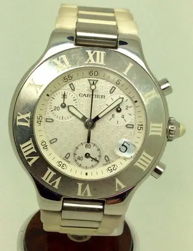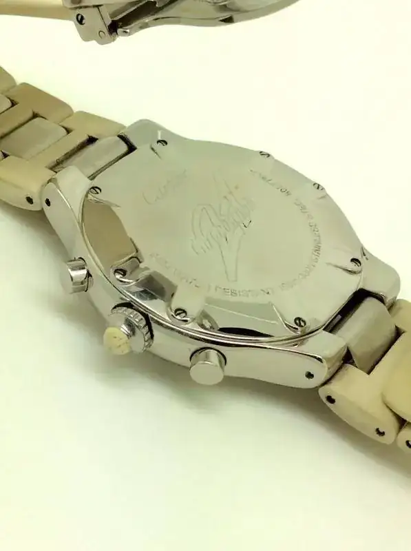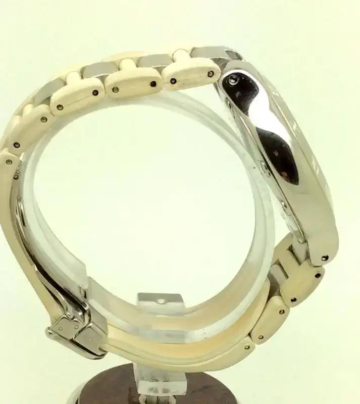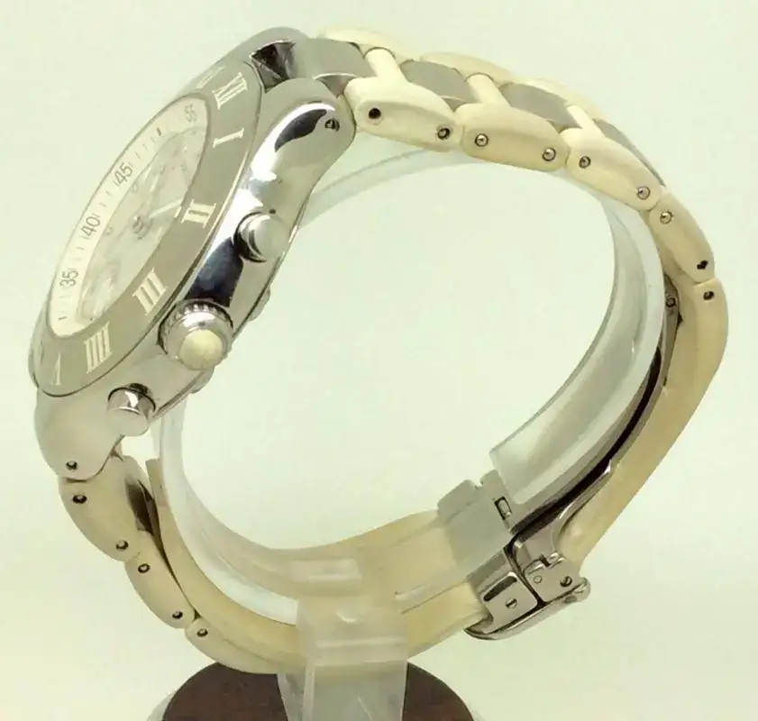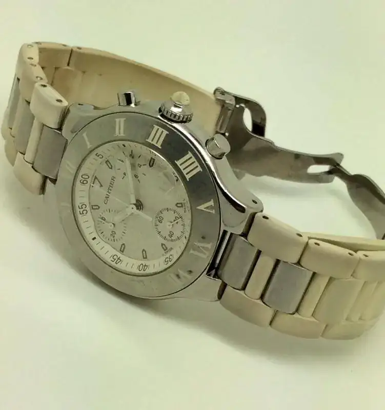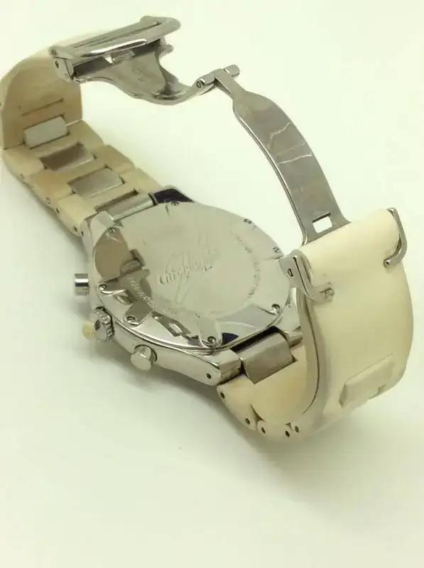 El caucho blanco de la correa y la corona están sucios. El PVP de este reloj cuando se dejó de hacer era 4050€ el precio de una correa nueva es 518€.