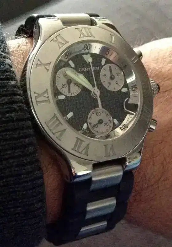 Buenas cambiaría un Cartier Chronoscaph 21 del 2007 con caja, papeles, en muy buen estado, con poco uso, 38 mm, correa caucho acero, esfera preciosa con 3 su esferas y ya des catalogado por algún reloj que me motive en el que incluso puedo poner dinero para cubrir diferencia a favor del que me ofrece. Me interesan: Bulgari, Breitling, Junghans, Cartier, Omega Speedmaster reduced, en fin y tal vez alguna marca que no sobrepase los 40 mm.