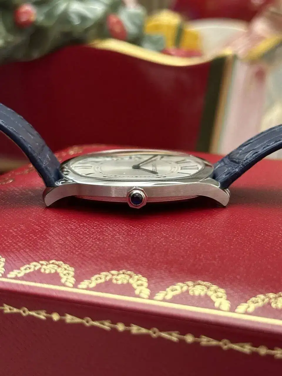 Pues lo dicho, para financiar otras aficiones saco para el respetable esta maravilla de Cartier. Un precioso reloj que sirve tanto para vestir como para ir en vaqueros, pocos relojes hay tan polivalentes. Y qué decir de su comodidad, parece que no llevas nada con tan solo 6,6mm de fondo y un peso de lo más contenido.