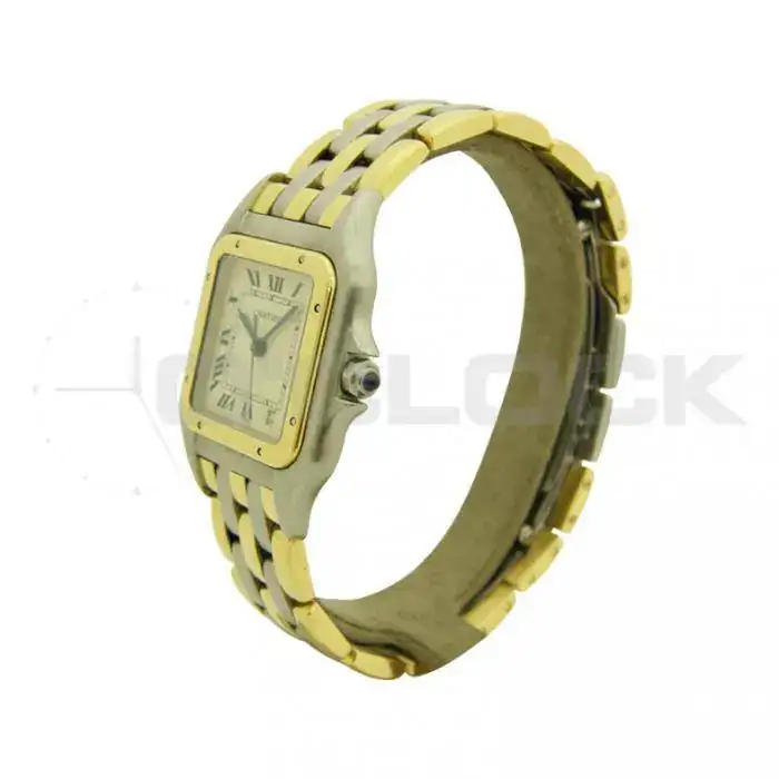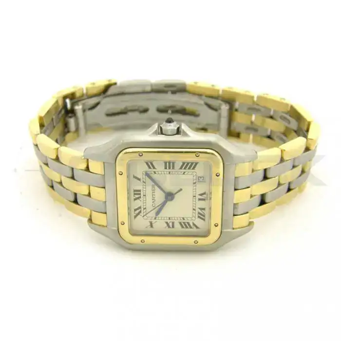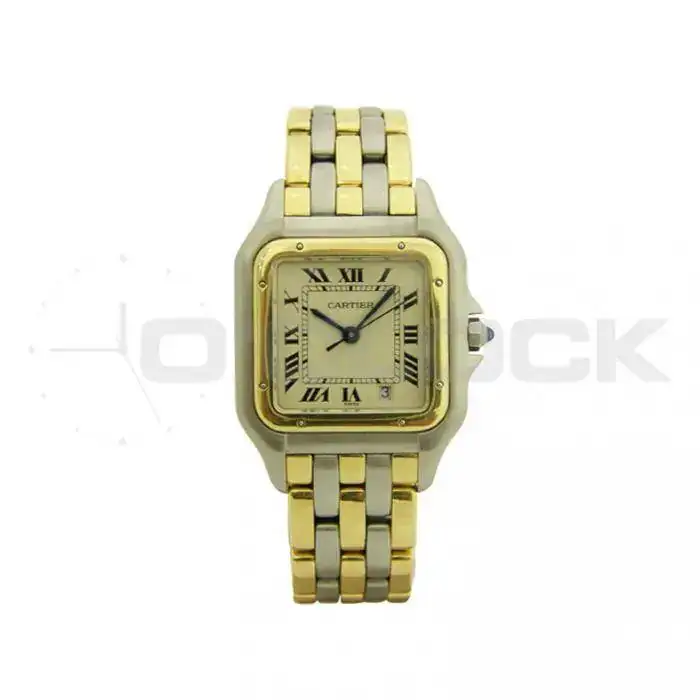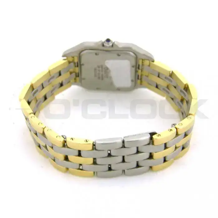 - Características: Cristal de zafiro, caja de acero y oro, brazalete de acero y oro, hora, movimiento de cuarzo, luneta de oro, esfera blanca con números romanos...