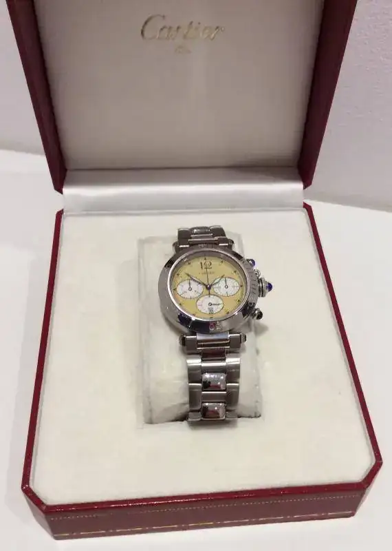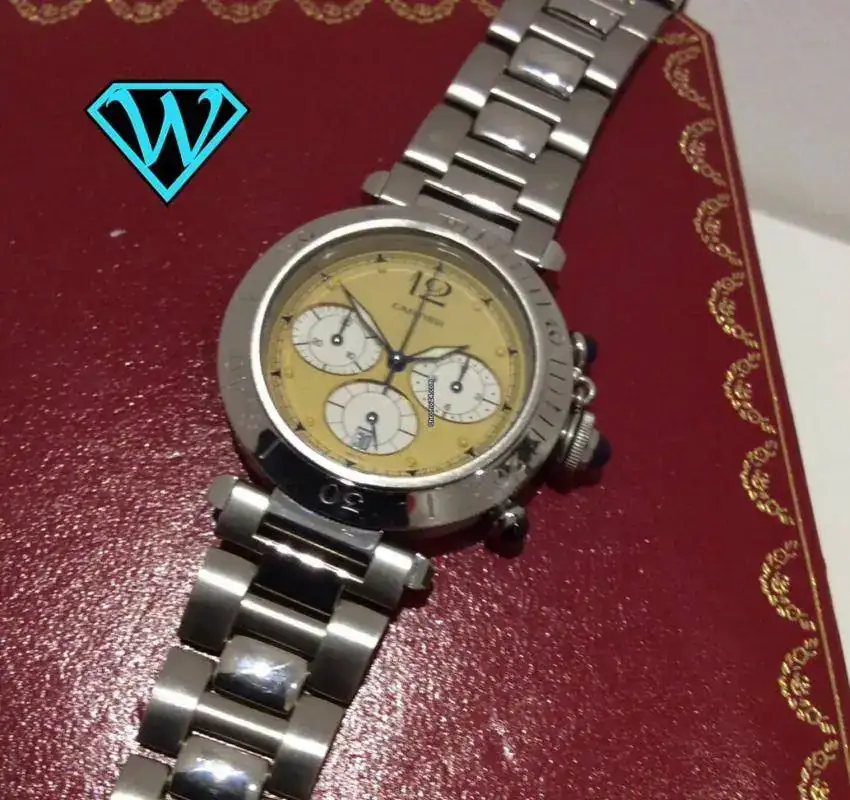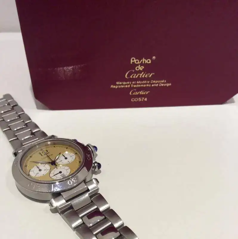 Cartier Pasha crono de cuarzo 38mm,con armis de acero,y estuche,no tiene los papeles originales. El reloj se entrega con los eslabones que se ven en las fotos. Precio 2000€
