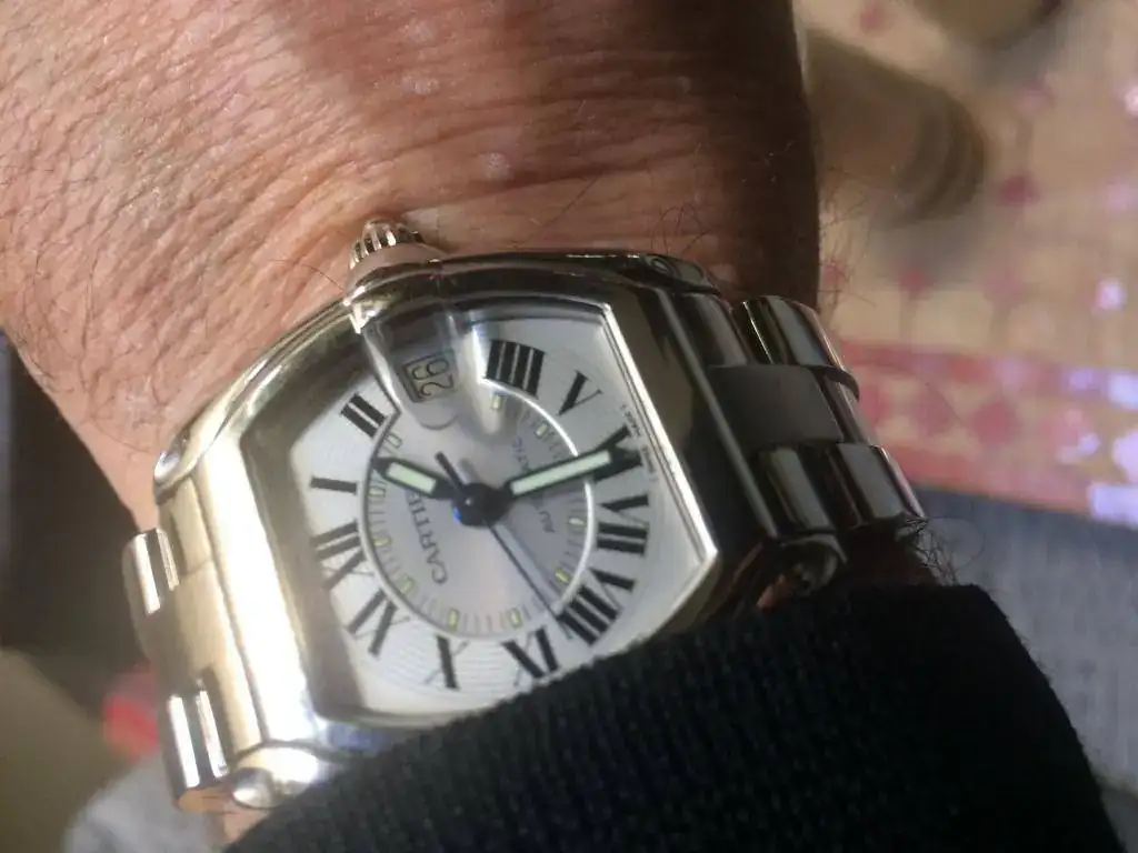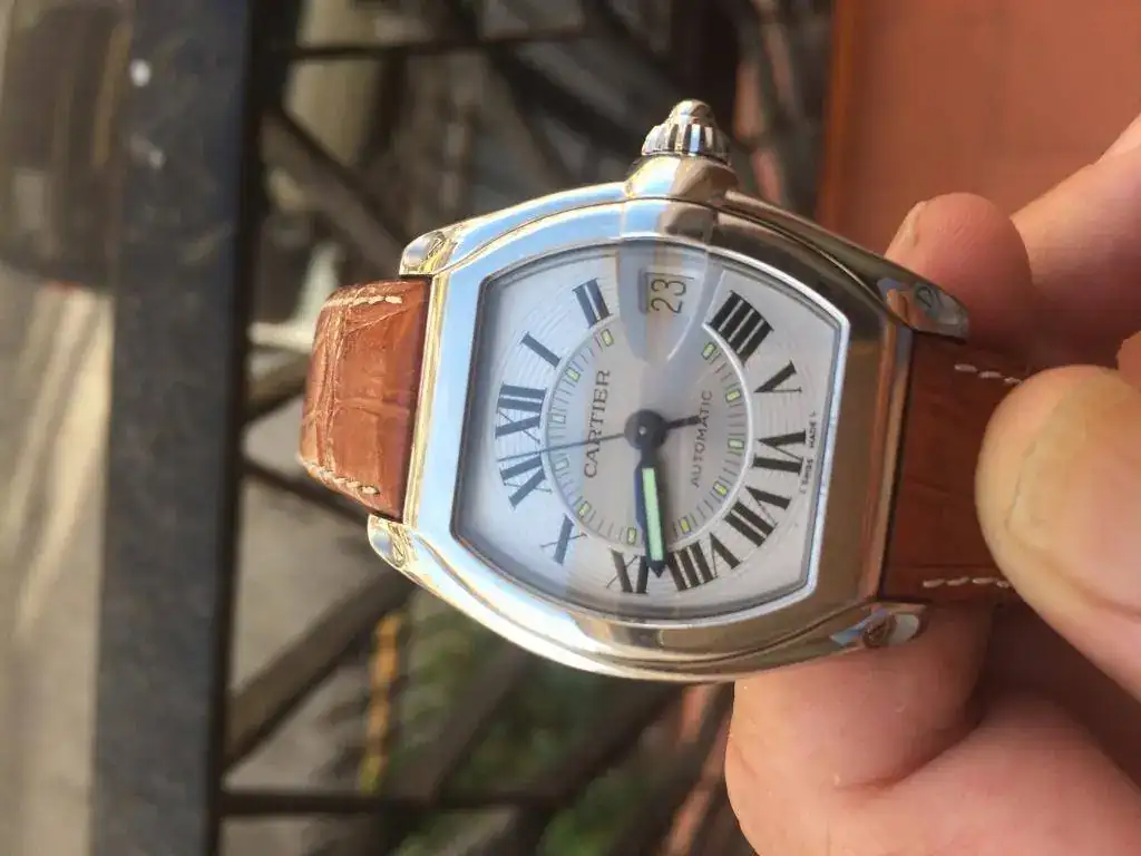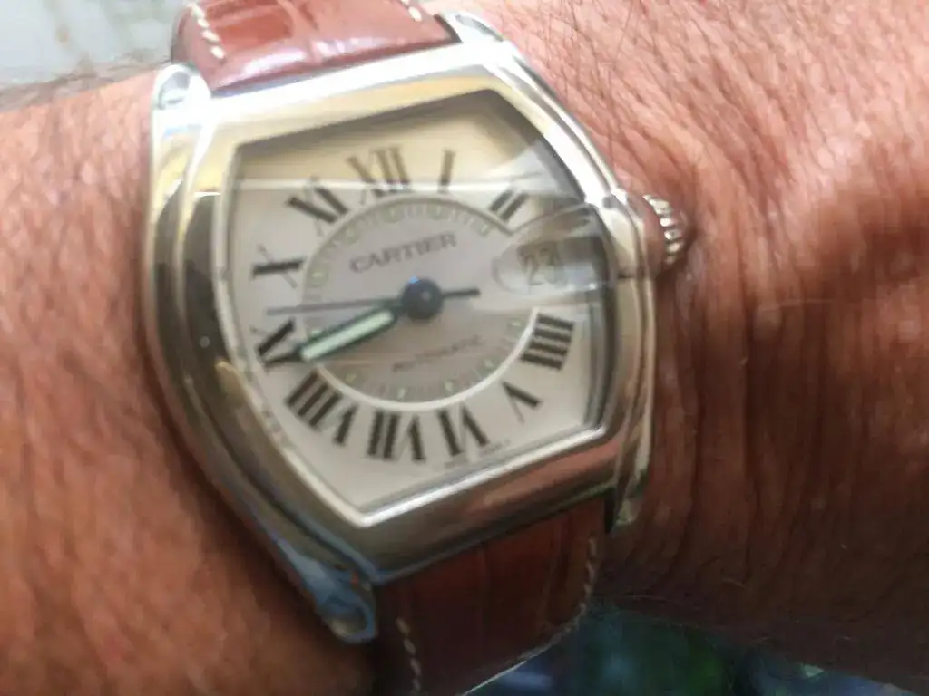 Pongo a la venta por falta de uso y acumulación de relojes este Cartier Roadster de 38-43mm , Números romanos y agujas azules . Lo compré hace dos años en este mismo foro y desde entonces solo habrá tenido dos o tres puestas, El reloj no ha sido pulido y tampoco es nuevo así que tiene en los laterales de las caja algunas señales de uso , nada importante y se pueden quitar con un repaso de toallita quitarañazos. Yo no lo he hecho.
