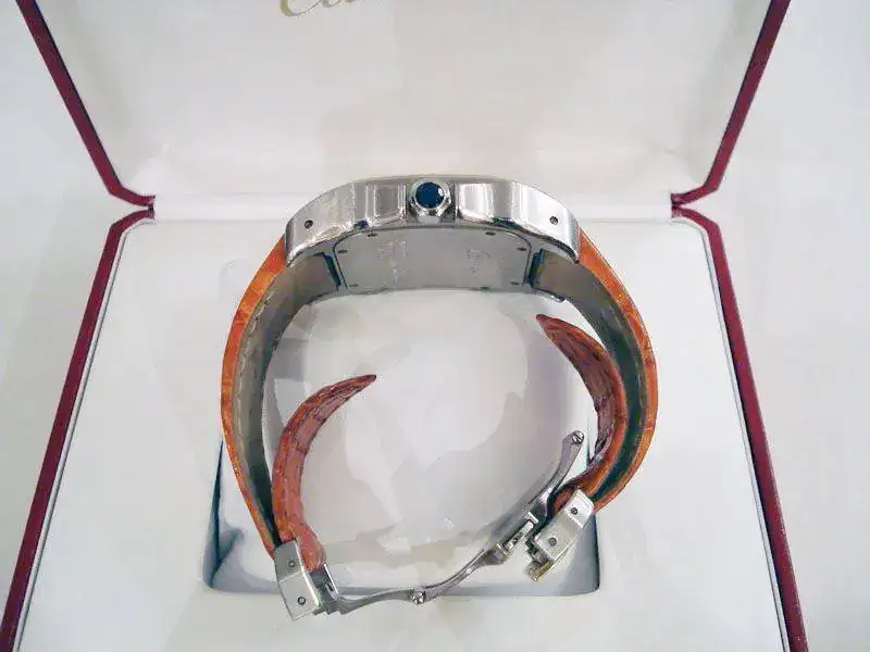 Observaciones : Modelo unisex con la esfera clásica blanca de Cartier con número Romanos. Modelo con calibre automático. Reserva de marcha de 42 horas y 21 rubies. Cristal de zafiro. Bisel de oro macizo sujetado con 8 tornillos que atraviesan la caja. Correa de piel con cierre deployante. Agujas azuladas, corona decorada con espinela. Se regala otra correa a estrenar.