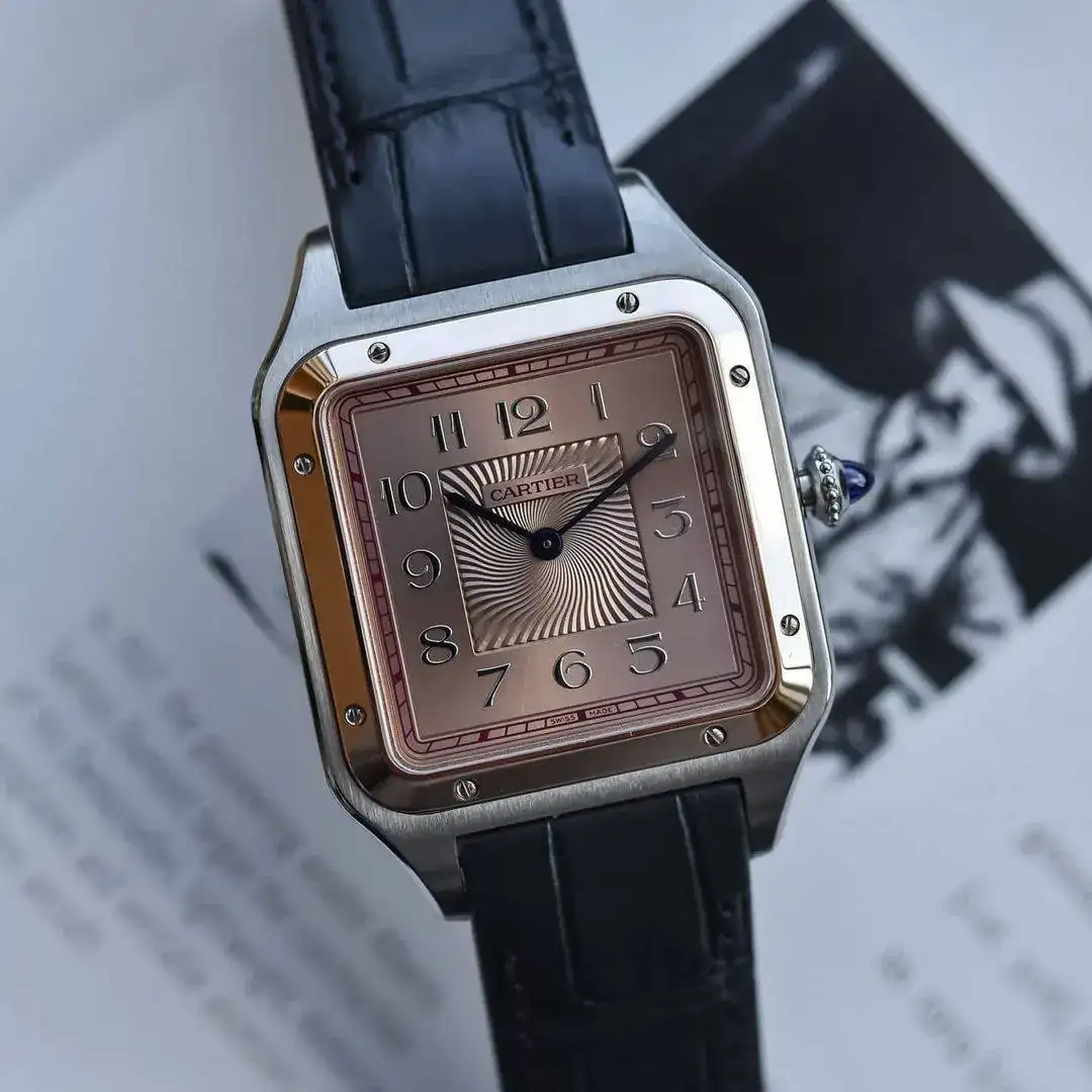 Hola, viendo relojes en Instagram me encontré con esta novedad de Cartier, un Santos Dumont XL Edición Limitada con una esfera en un tono burdeos y oro rosa, con marcadores de hora pulidos con agujas azules, para los que nos gusta mucho la marca y la linea Santos, pero no tanto los números romanos esta muy bien, elegancia le sobra. Del precio no tengo idea, al ser un Cartier, de oro rosa y una edición limitada a 500 piezas seguro que barato no debe ser, van un par de fotos, que tal?