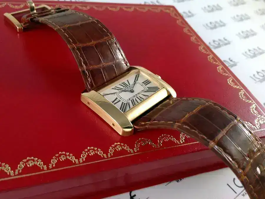 En venta este elegante reloj de señora Cartier Tank Divan Medium de oro 18kt. del año 2003