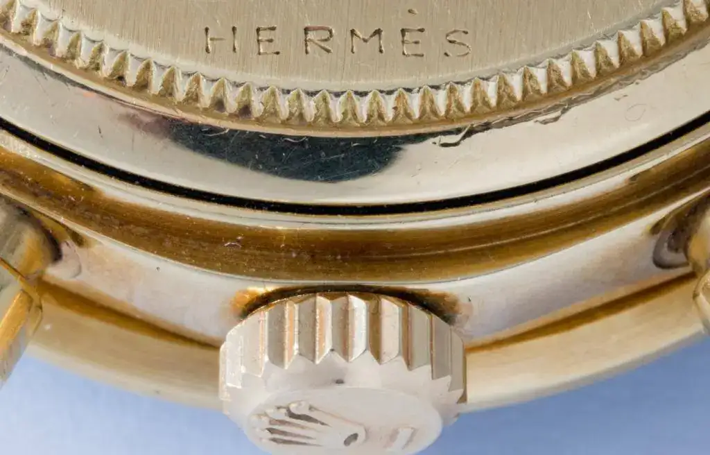 La practica de la doble firma ocurría también con Hermès, que vendía Rolex con su nombre estampado en la trasera: