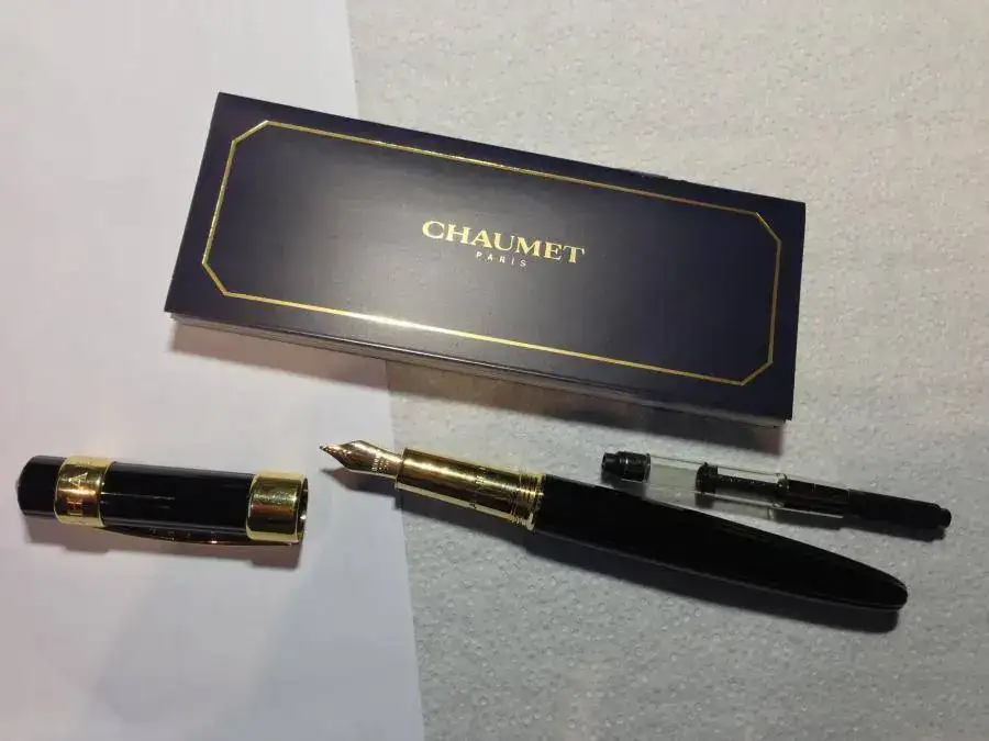 Buenas. No frecuento este foro, pero si los de relojes. Me gustan las plumas, pero no las uso desde hace años. SIn embargo, hace unos meses salió en una subasta una pluma que me gustó, y la compré. Seguramente tendría que haberlo meditado más, y haber consultado aquí, pero ya sabeis como van las cosas. Pujé, y me la llevé. En la foto. Entiendo que Chaumet diseña, y no fabrica, pero ignoro quien es el artífice material de la mia.