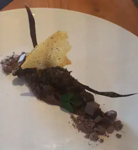 Uno de los postres, este, mus de chocolate con helados (los helados son los cubitos laterales)