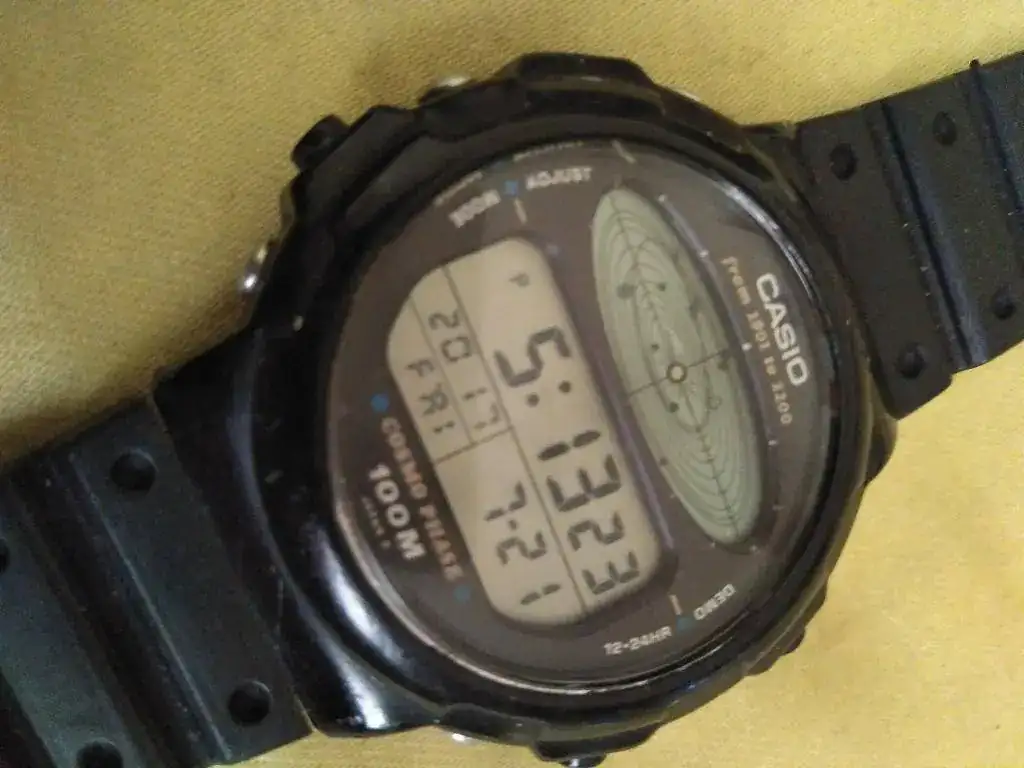 Ofrezco este reloj Casio CGW-50 con la posición de los planetas del sistema solar en el día que se ponga, amén de la del cometa Halley.