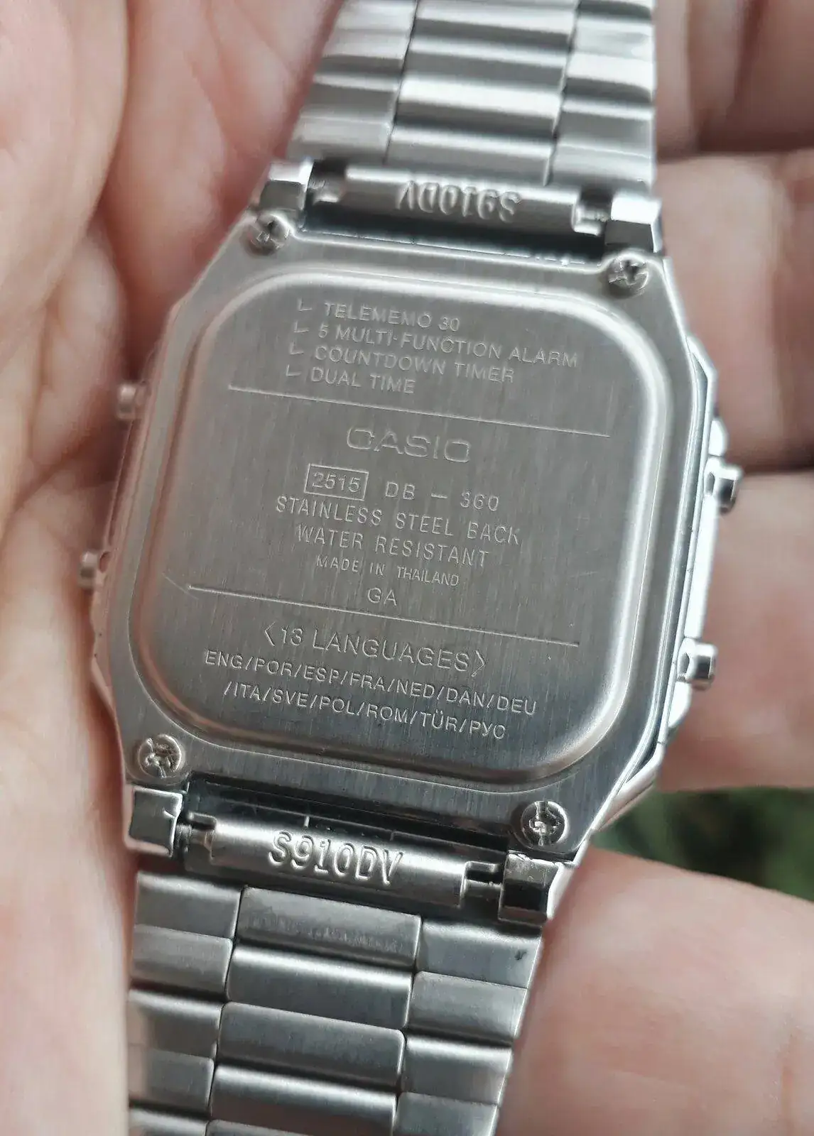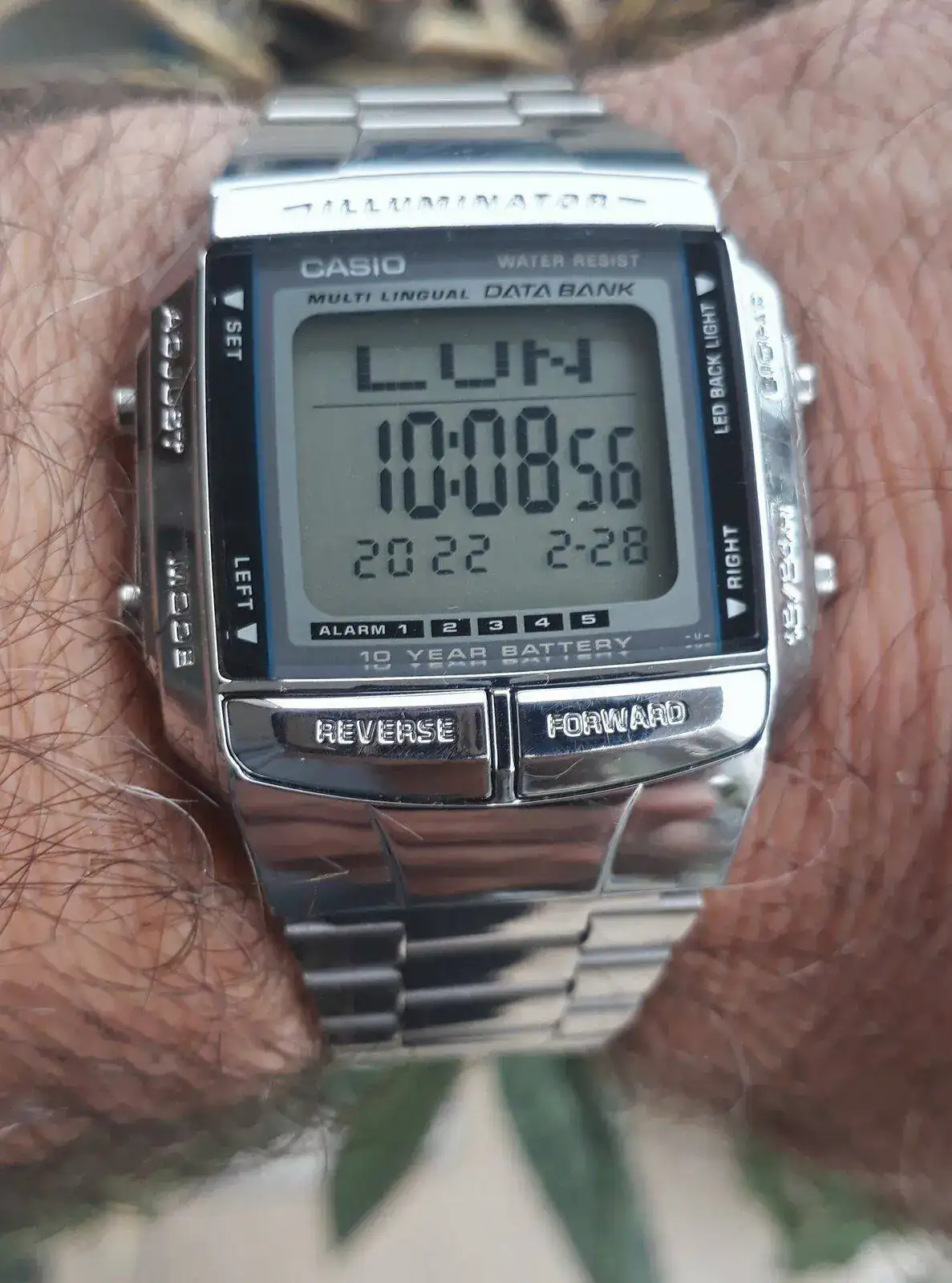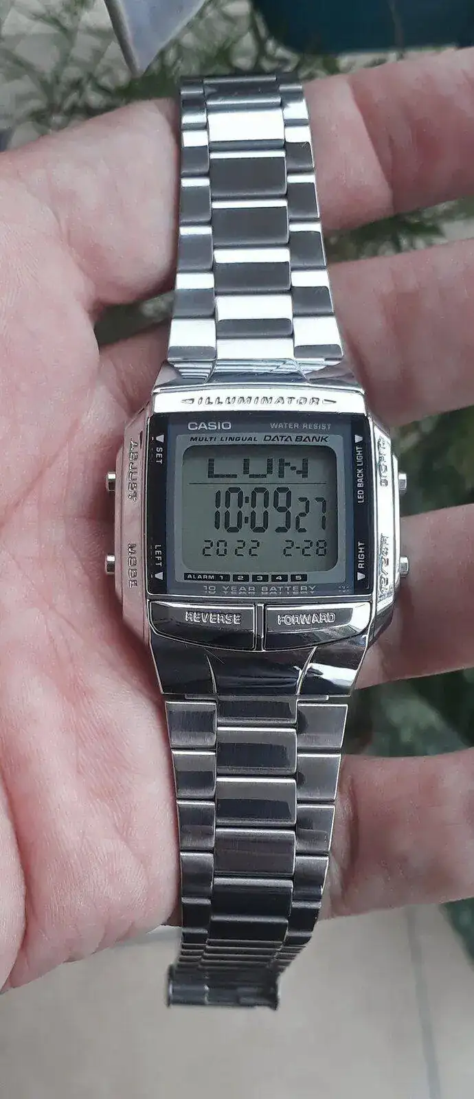 Buen lunes y comienzo de semana hoy con el Casio data bank DB 360 modulo 2515,diferencia con el DB36 por su caja y brazalete que en este caso es caja de resina cromada,brazalete acero inoxidable, una pieza que me agrada mucho,muchas funciones,5 alarmas,cronómetro,cuenta regresiva,iluminación led,fechador completo,hora dual y señal horaria. Un reloj funcional,cómodo ,liviano de llevar y de una muy linda estética. Pieza usada de restauración propia.