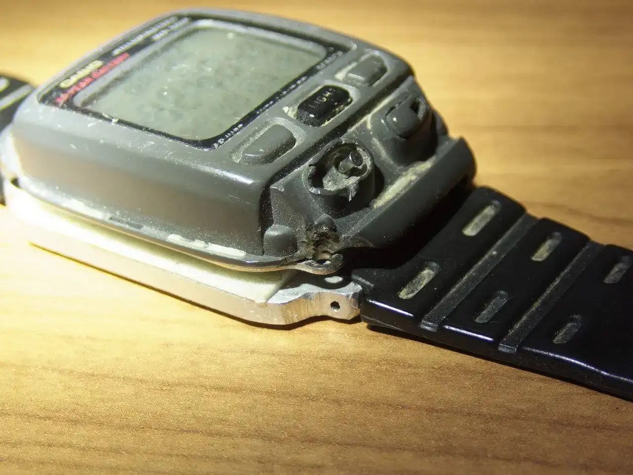 El tema es que hasta ahora he ido llevando Casio de resina digitales. El primero uno que destacaba por su agenda de teléfonos, que no me vino mal, y por su pila de 10 años. Lo de la pila supongo que sería cierto, porque no se la llegué a cambiar. A los 5 años se me deshizo la sujeción de la correa y lo aguanté otros 3 años pegado sobre una base de aluminio casera tallada con lima... pero entonces ya se desmenuzó la propia carcasa y le entró agua. De correas ni me acuerdo pero también tuve que sustituir.