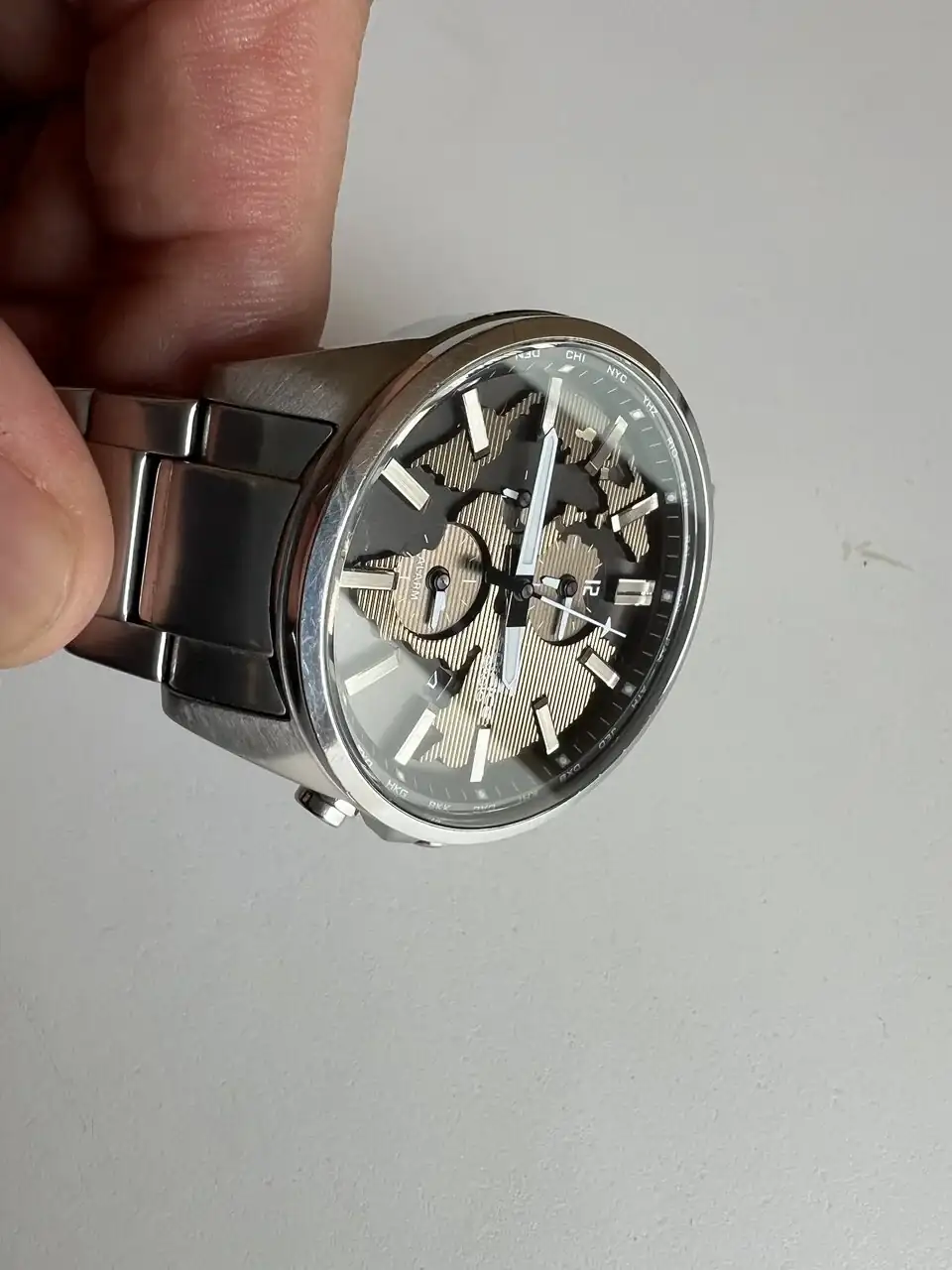 · Tres manillas (Horas, minutos, y manecilla de la ciudad mundial).