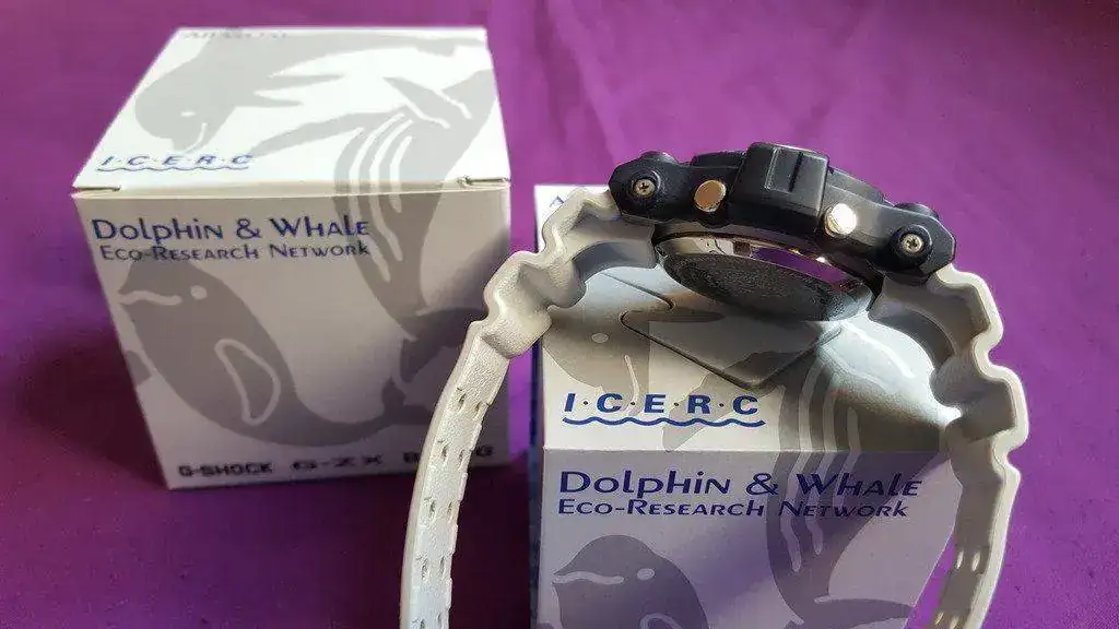 Vendo Casio Frogman Titanium GW-205K-2JR I.C.E.R.C. Serie especial de Dolphin & Whale Eco-Research , en muy buen estado, cristal impoluto, bisel y correa en muy buen estado, ver fotos, la tapa trasera si presenta micro arañazos de uso.