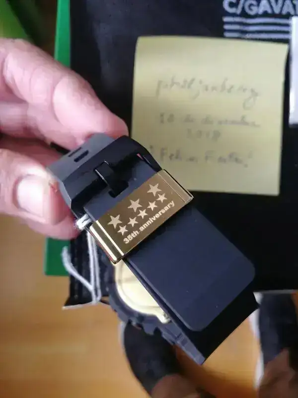 Tiene los detalles en oro de la serie limitada. En la zona del bucle que es algo mas majo que uncasio tradicional y en la trasera.