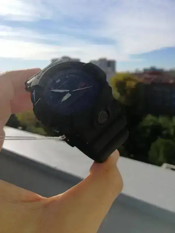 Otra cosa que me gusta es su equilibrio para este tipo de reloj. Tiene el diametro y altura justos para tener presencia pero no ser enorme ni molestar. Otros modelos de la serie son mucho mas altos y anchos... este esequilibrado para ser un g shock.