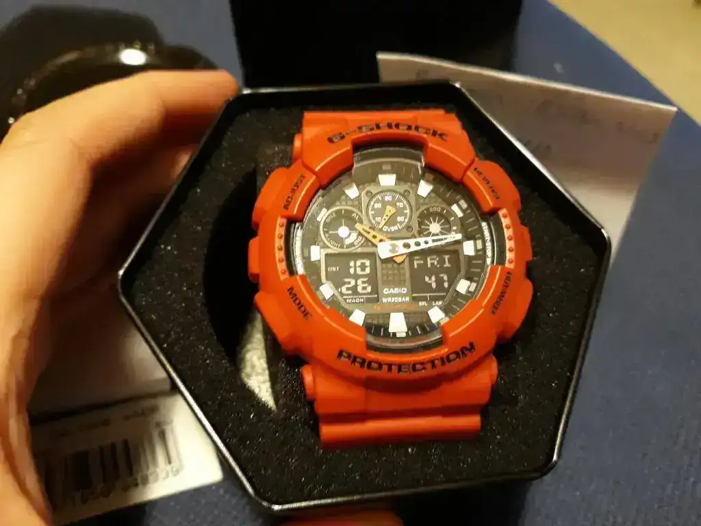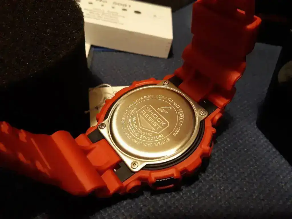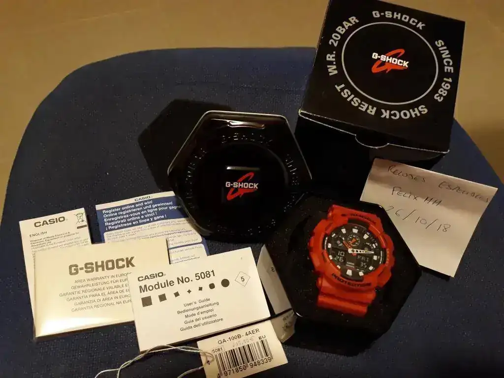 Fruto de un enamoramiento de escaparate al ver la colorida gama G-Shock, lo compré en una relojería de mi localidad al gustarme el tono de rojo que tiene. Es un rojo mate "gomoso", muy vistoso.