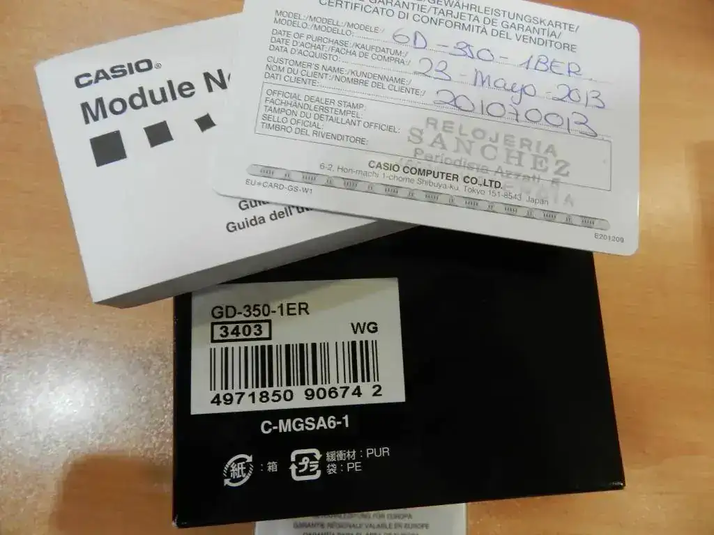 Pongo a la venta este casio que me llegó como parte de pago de una venta a un mercante de aquí en Valencia,el reloj esta nuevo no lo utilizo me lo puse sólo una vez,el modelo es GD-350-1ER, reloj está nuevo y completo con cajas y documentación,comprado el 23-05-2013 en relojería de Valencia.