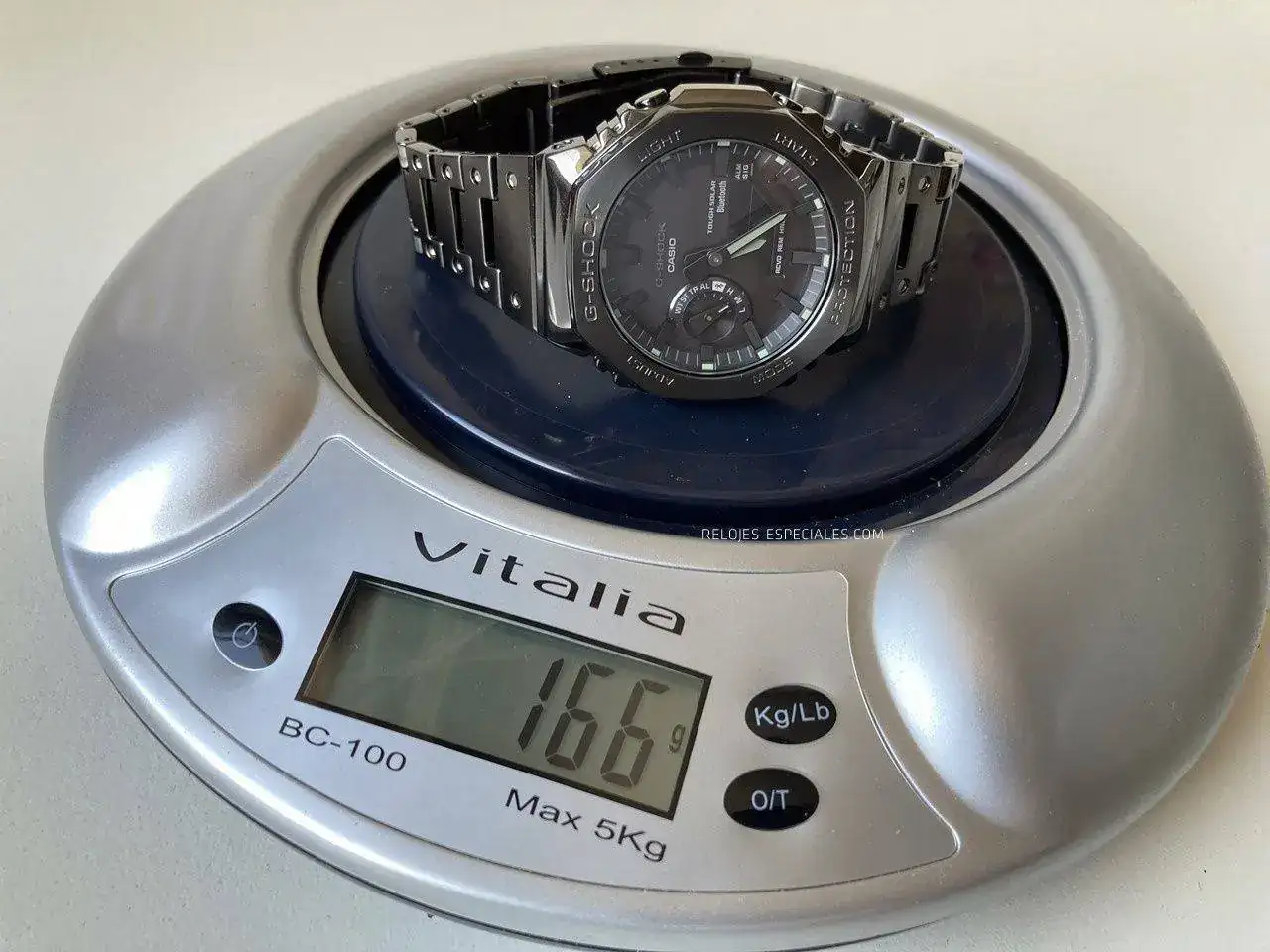 Dejémoslo claro desde el principio, el Casio GM-B2100 es ideal para aquellos que quieren llevar un reloj duro y a la vez elegante (concepto subjetivo, este) y que no necesiten mucho más que leer la hora en su reloj. Es cierto que tiene las alarmas, cuenta regresiva y hasta cronógrafo ("cronómetro") a la centésima de segundo, pero sus ventanas digitales (segundos y fecha, en posición "normal") son tan pequeñas que vas a necesitar una lupa o vista de halcón para poder leerlas en condiciones standard. Que la esfera sea tan oscura -y algún cristal ahumado- tampoco ayuda mucho. La parte buena es que la mayoría de sus funciones se pueden configurar directamente desde la app del teléfono inteligente asociado vía Bluetooth.