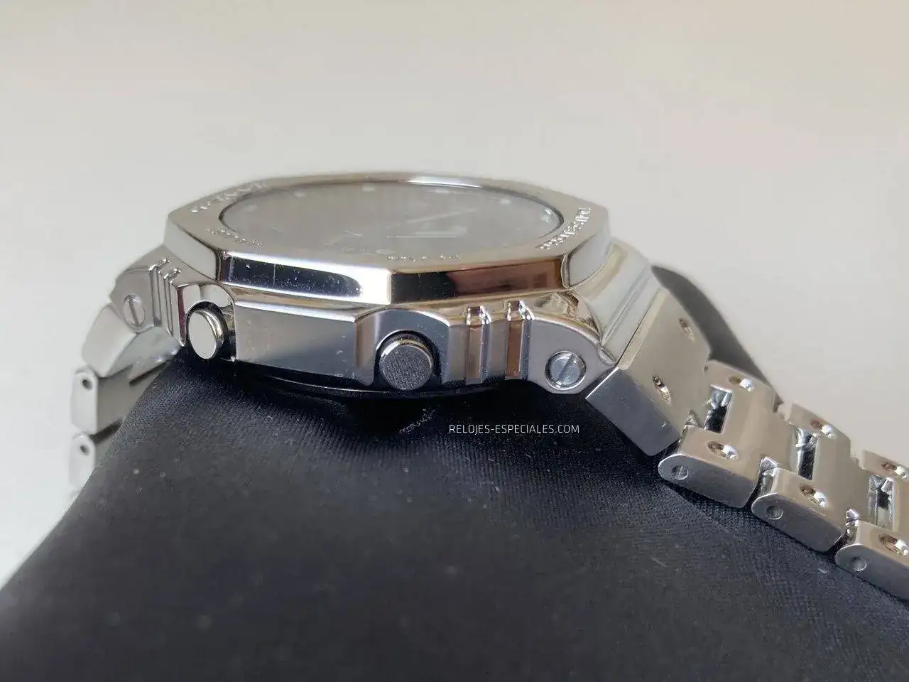 El brazalete no es exactamente integrado en el sentido que lo pueda ser el Royal Oak de AP (y tantos otros) pero da continuidad estética al conjunto caja-brazalete de la versión de resina. Todo el conjunto transmite sensación de robustez podríamos decir que aumentada al pasar precisamente de resina a acero.