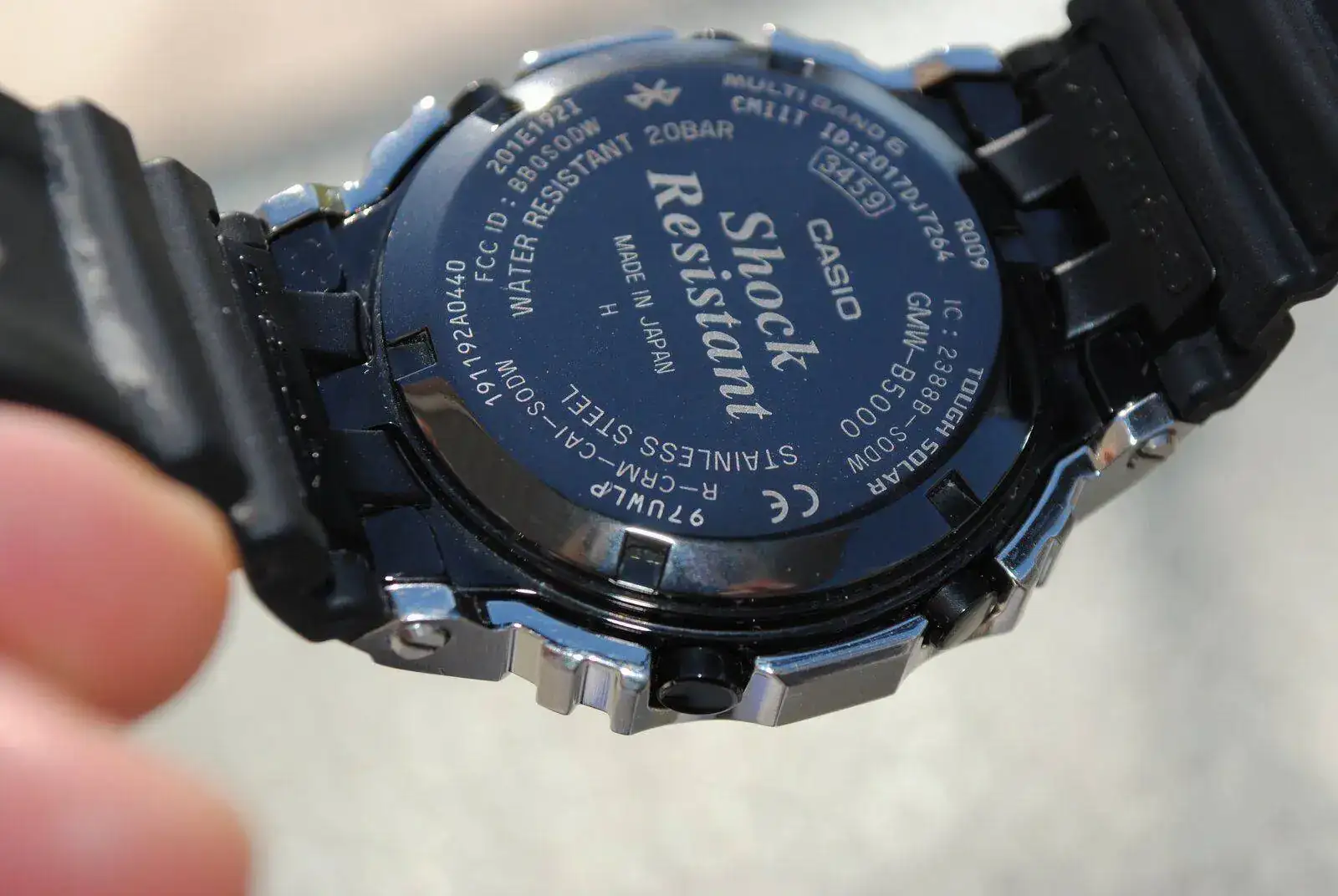 Solar, radiocontrolado, Bluethoth, caja de acero con revestimiento DLC. Carcasa de acero. Correa de caucho muy blandita (nada que ver con las de los G-SHOCK Básicos) con trabilla firmada de acero.