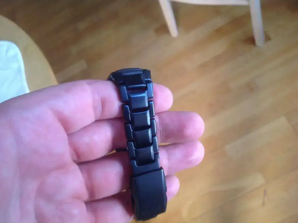 El set va completo con caja e instrucciones. El estado del reloj es muy bueno, no me atrevería a decir que de reestreno pero casi. No tiene ninguna marca apreciable en cierre, armis, caja ni cristal. El brazalete está ajustado a mi muñeca de 19 cm y sobran 3 eslabones. Tiene muy pocas puestas y siempre con el cuidado habitual tengo con mis relojes. Nunca lo he sumergido.