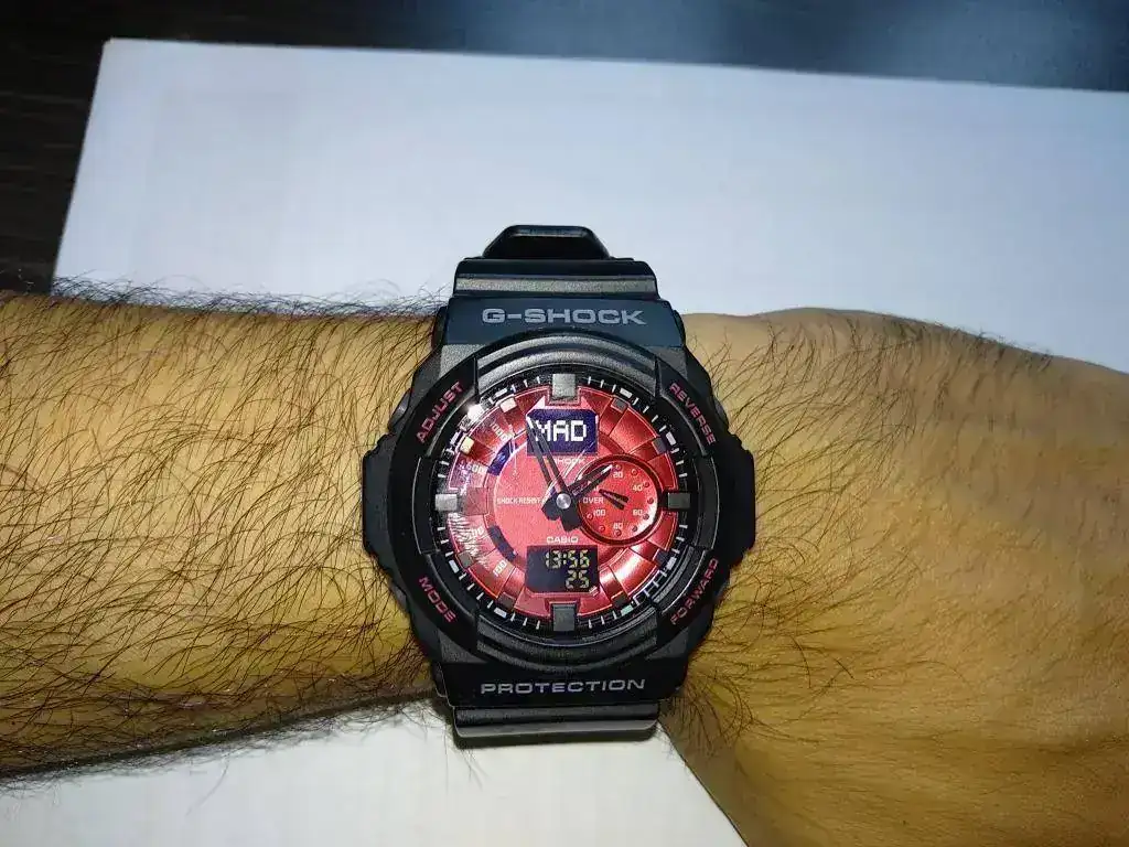 Los candidatos son un Casio GA100 y el Casio GA150, aunque los colores en los que me los ofrecen son como los de la imagen, no les prestéis mucha atención, ya que sólo quiero pedir opinión sobre sus características, diseño, cual es más completo, etc. Aclarar que quizá me guste un pelín más el GA100 por la esfera, pero si el GA150 tiene más prestaciones, no dudaría en pillarlo.