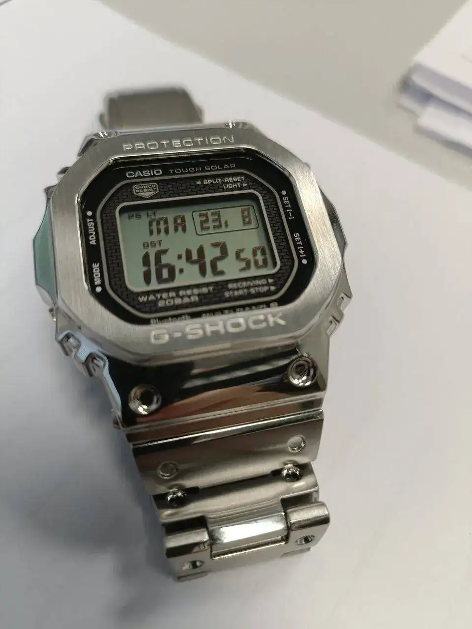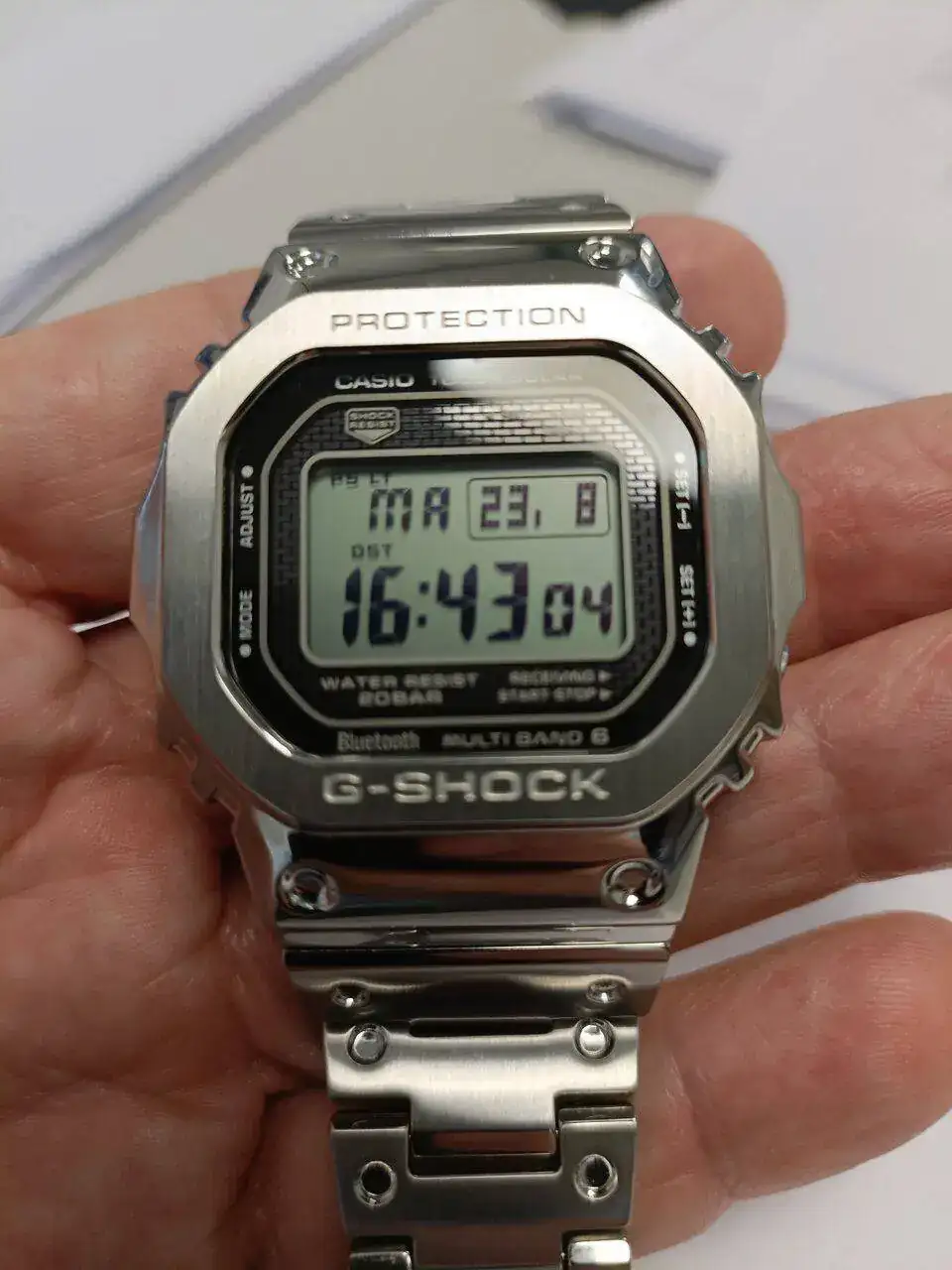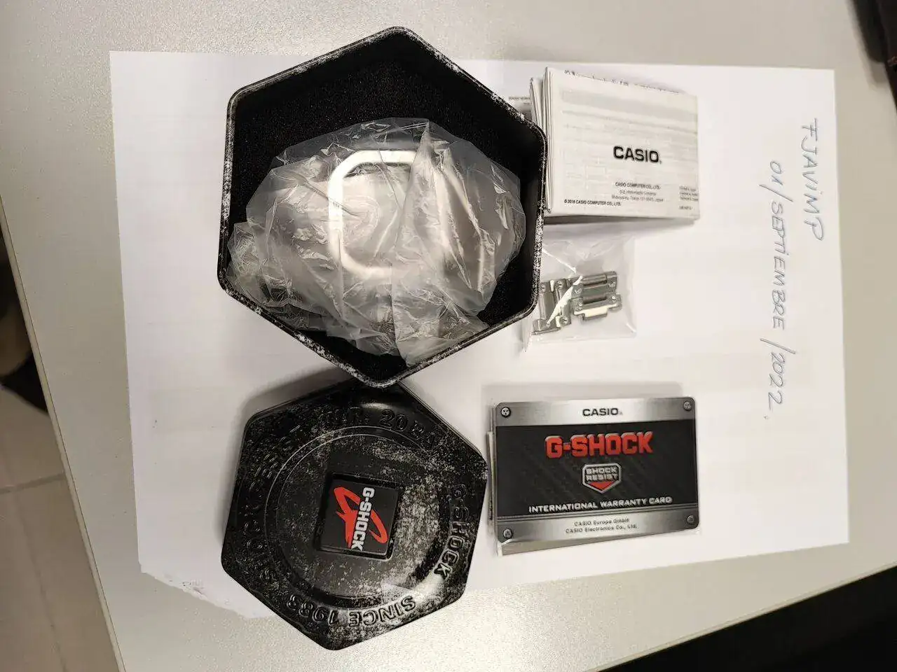 Pongo a la venta un Casio referencia GMW-B5000D-1ER comprado hace unos 9 días en la página oficial de Casio, es el modelo acabado en acero, vamos lo que viene a ser un tanque que brilla. Completo de cajas y documentación. Características...Todas: acabado en acero, conexión al móvil mediante Bluetooth, cristal mineral, WR 200 metros, Wave Ceptor, 5 alarmas diarias....Y un sinfín de funciones en una estructura de acero. Un par de puestas, lo justo para que tenga alguna marquita en el cierre, pero tampoco ha dado tiempo a más.. Ficha correspondiente: