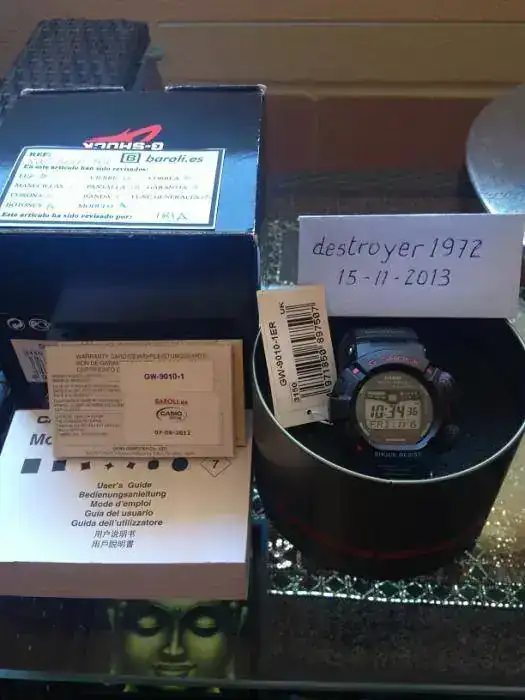 Hola, de nuevo por este apartado, saco a la venta este G-Shock de Casio, un Mudman Gw-9010-1ER, solar y radiocontrolado, en un estado espectacular, con muy pocas puestas, sin golpes o arañazos, suelo mimar mucho a mis relojes. El reloj fue comprado a Baroli, con garantia desde el 07/0972012. Decir que guardo todos sus plasticos y etiquetas, asi como garantia, libro d instrucciones, caja de carton y metalica que venia con el reloj cuando lo recibi, osea con toda la dotacion.
