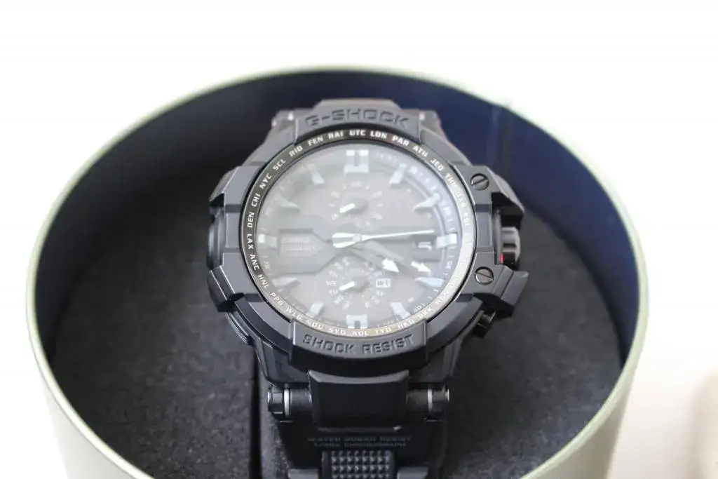 Hola a todos, saco a la venta por no poder atender" este fabuloso G-Shock con módulo rodeado del famoso gel que utiliza Casio en sus mejores piezas .Es un triple G resist,resistencia vibratoria,centrífuga y a impactos, también termómetro ,smart access,solar y radio controlado y un largo ect.La unidad en particular está en un estado de reestreno,se ha usado poco,no tiene roces, ni arañazos en cristal, armis o cierre,el bisel sí tiene un par de pequeñas marquitas,pero prácticamente no se notan( se entrega con nuevo bisel original).