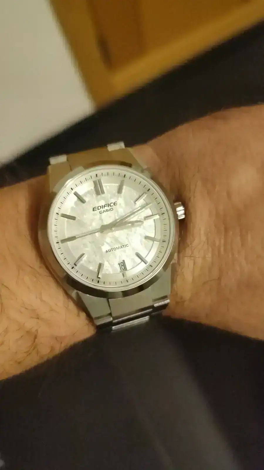 Es bonita esa esfera, que tal lo sientes? Te gusto en muñeca el tanaño? Saludos.Pues aquí está por fin en mi muñeca el blanco. La verdad que la foto no le hace justicia para nada, es precioso, y me ha sorprendido la tremenda calidad que tiene para lo que cuesta. Creo que es ligeramente superior al Tsuyosa, sobre todo por el cierre y algunos detalles. Bravo por Casio, que como empiecen a sacar otros colores y tamaños va a ser un auténtico pelotazo.