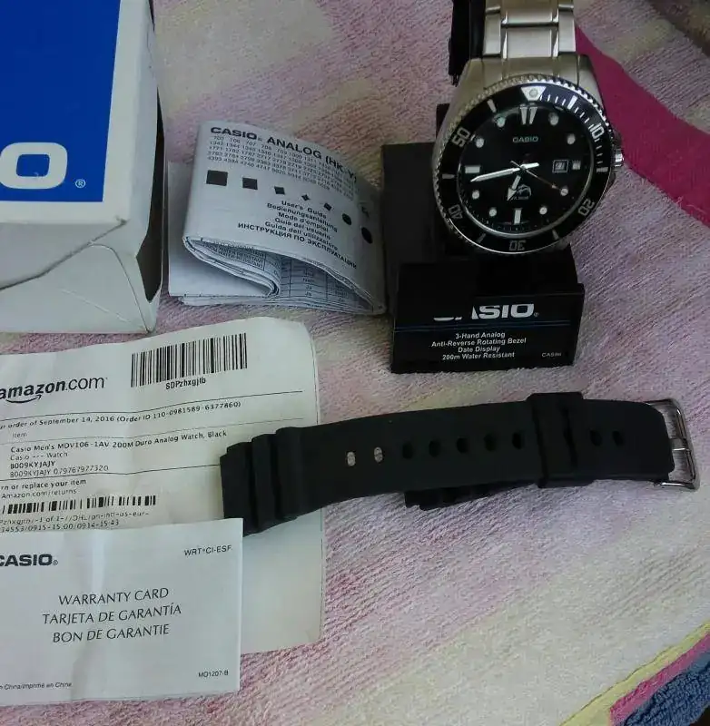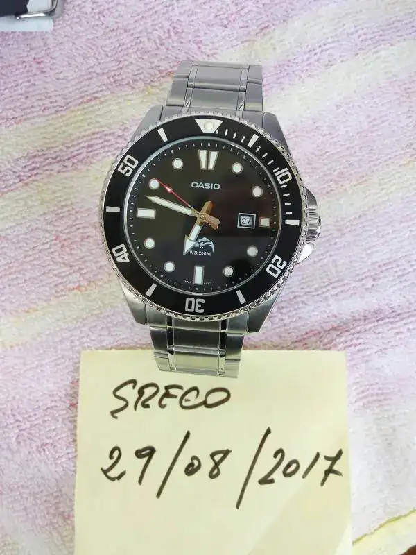 Vendo este estupendo reloj Casio Marlin. Es un 200 mts a un precio imbatible, imposible de conseguir en España, solo se comercializa para el mercado EEUU. Su estado es Bueno teniendo marcas de uso esporádico en el armis con el roce de la mesa del escritorio. En caja, cristal y bisel no observo ninguna marca. Va con su caucho original con el que se comercializa, sin apenas uso. También se envía con los dos eslabones sobrantes , está ajustado para muñecas de 17 ctm. Su precisión es de +/- 1.5 seg. mes por lo que funciona muy bien como corresponde a un buen cuarzo. Se compró en Setp-2016 queda algo mas de 1 año de garantia.
