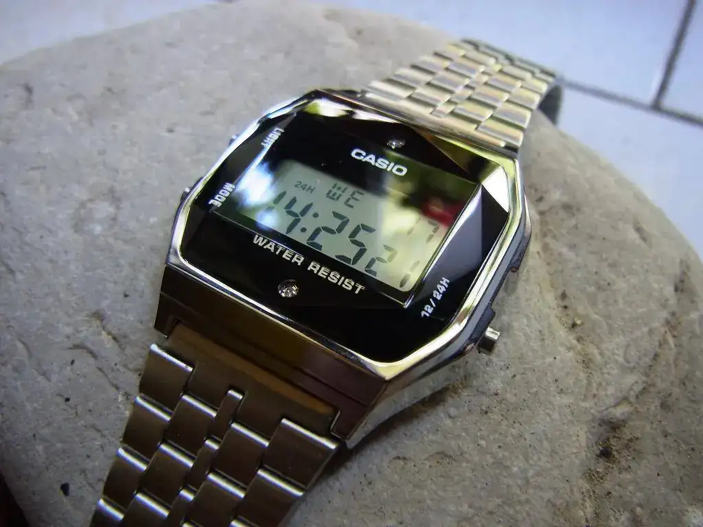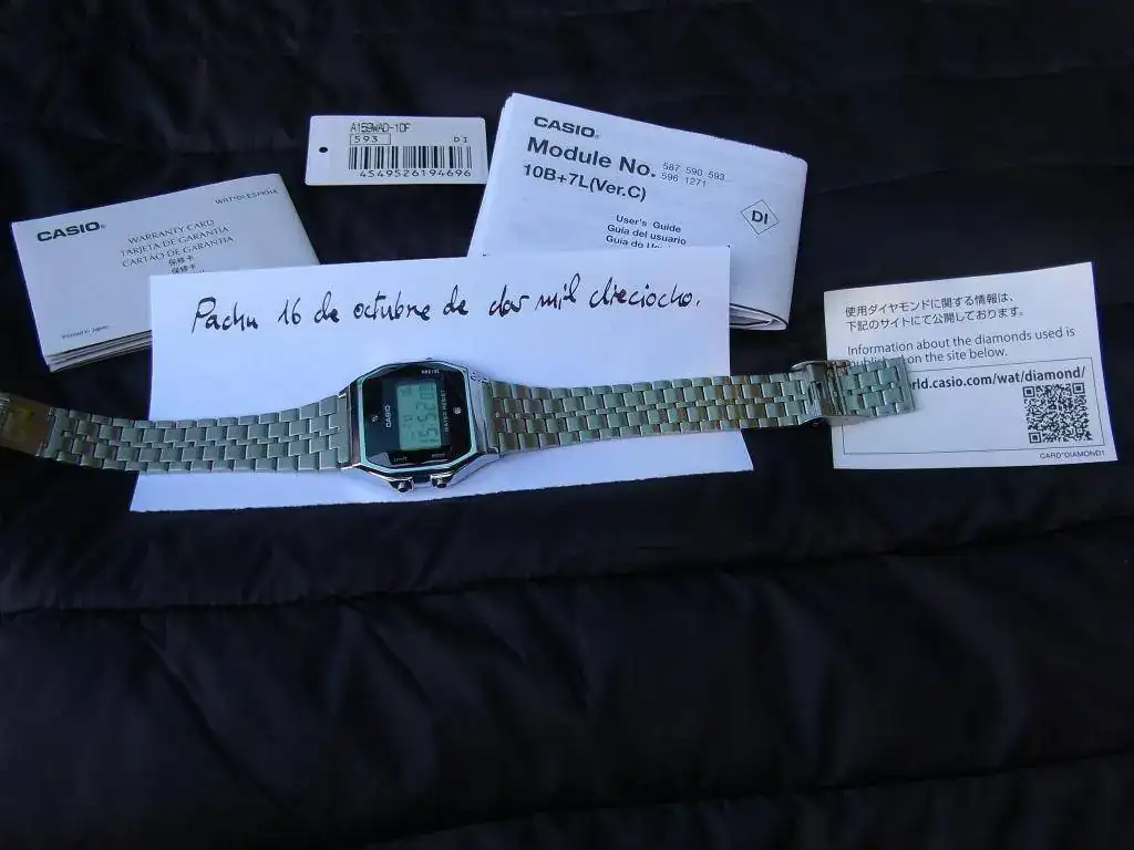 -- El movimiento es el conocido Módulo Casio 593,con alarma,cronómetro a la centésima de segundo,pila para 7 años,etc.