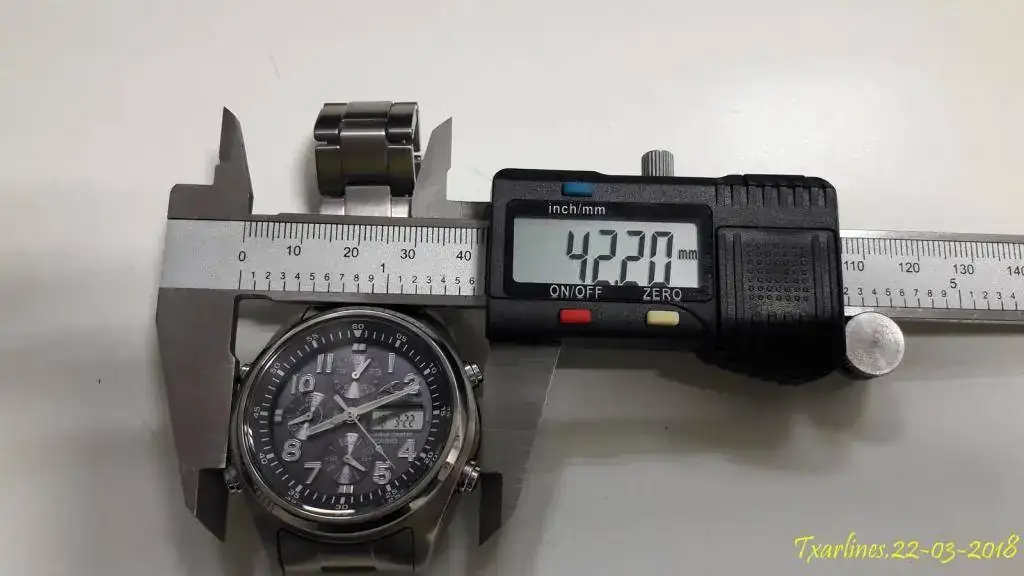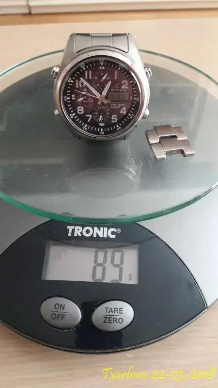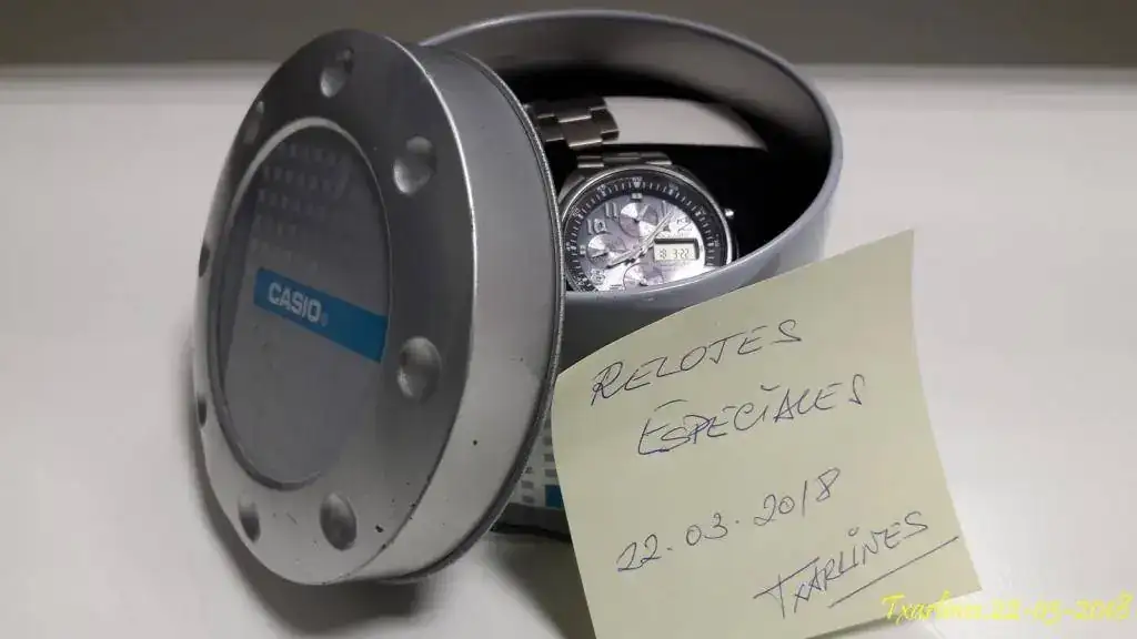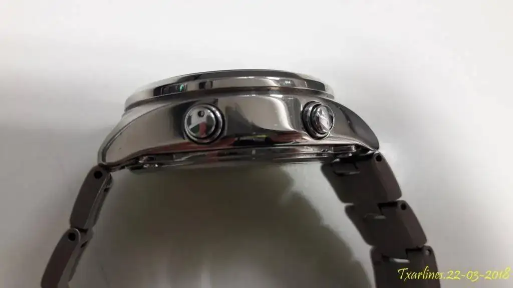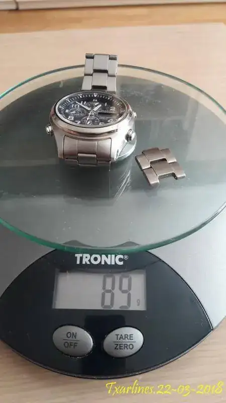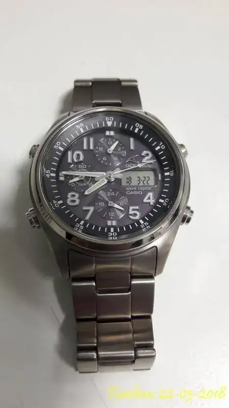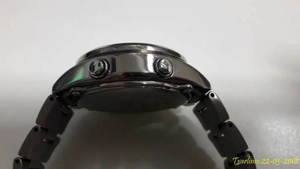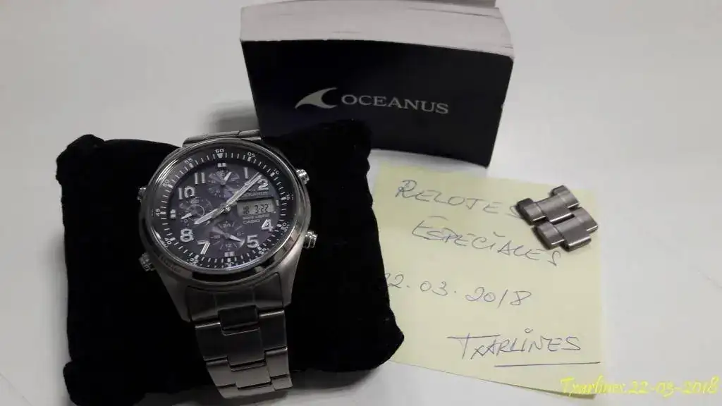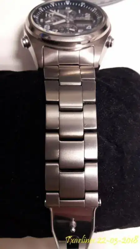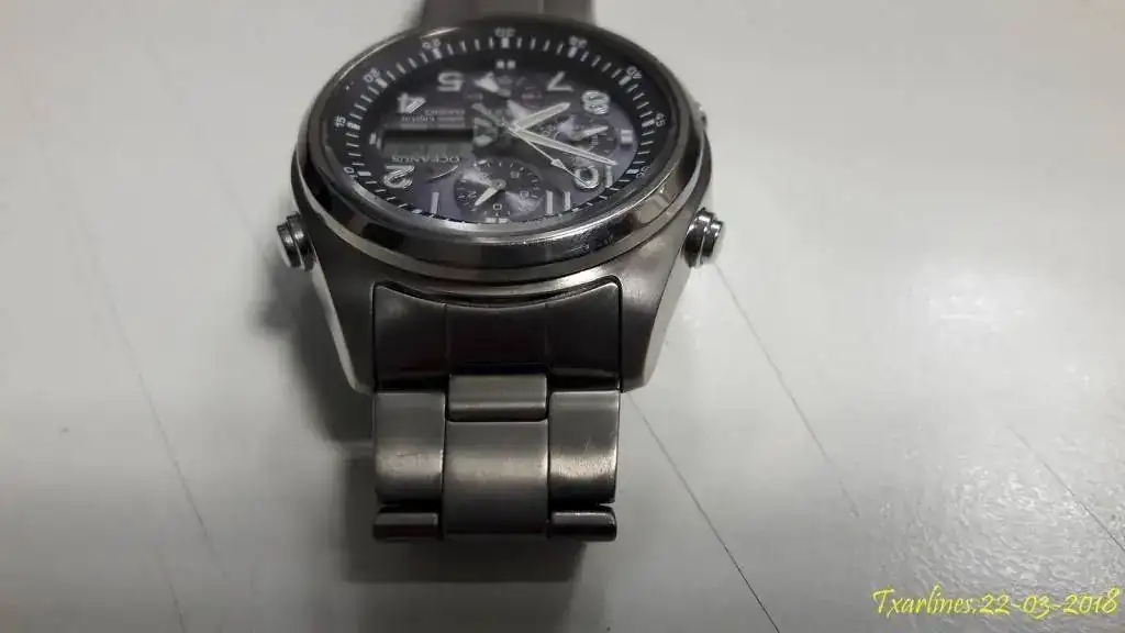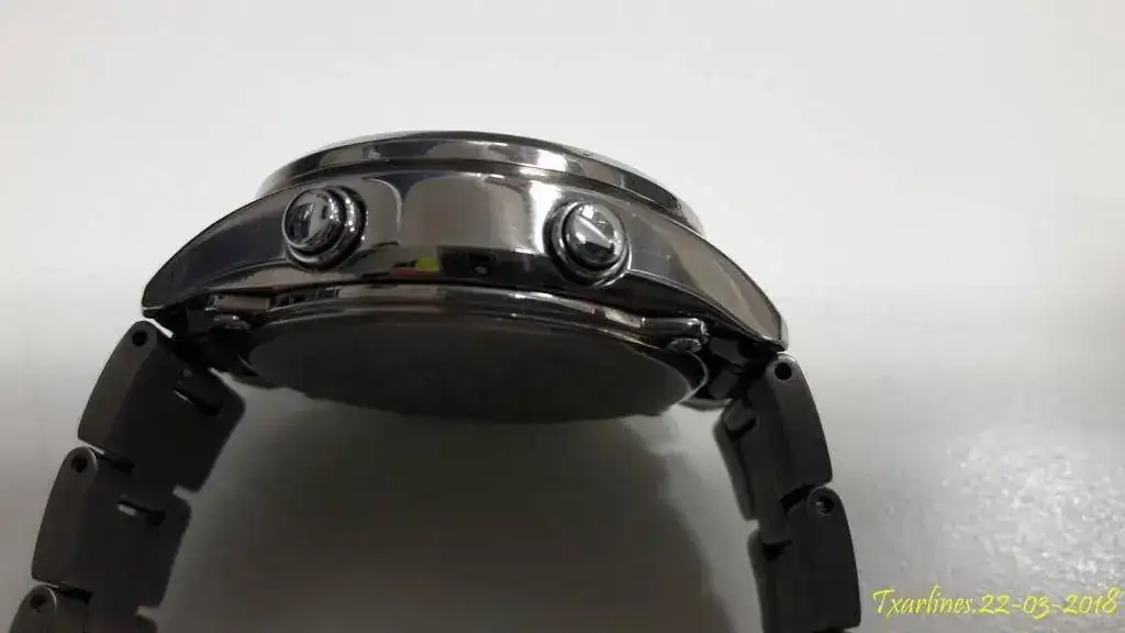 Se trata de un reloj con maquinaria de cuarzo. Con doble lectura horaria (analógica y digital). Solar y radiocontrolado, con sistema de ahorro de energía y puesta en hora automáticamente. Completamente de titanio, tanto la caja como el armis.