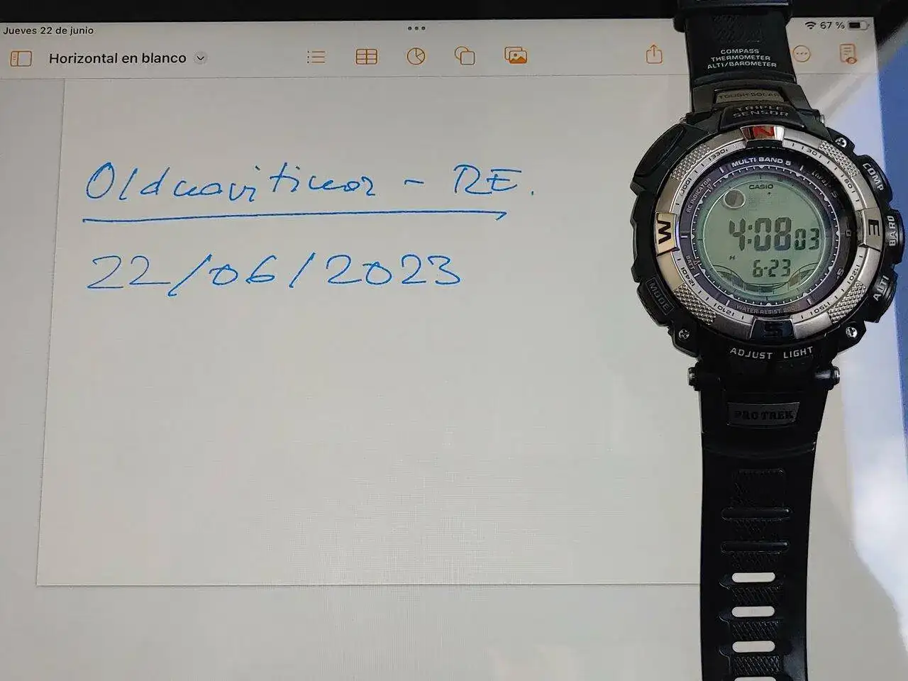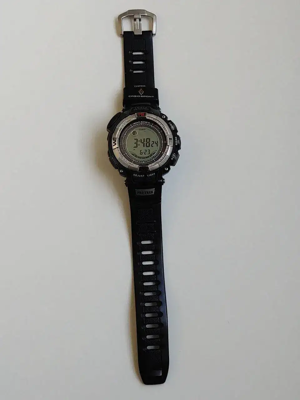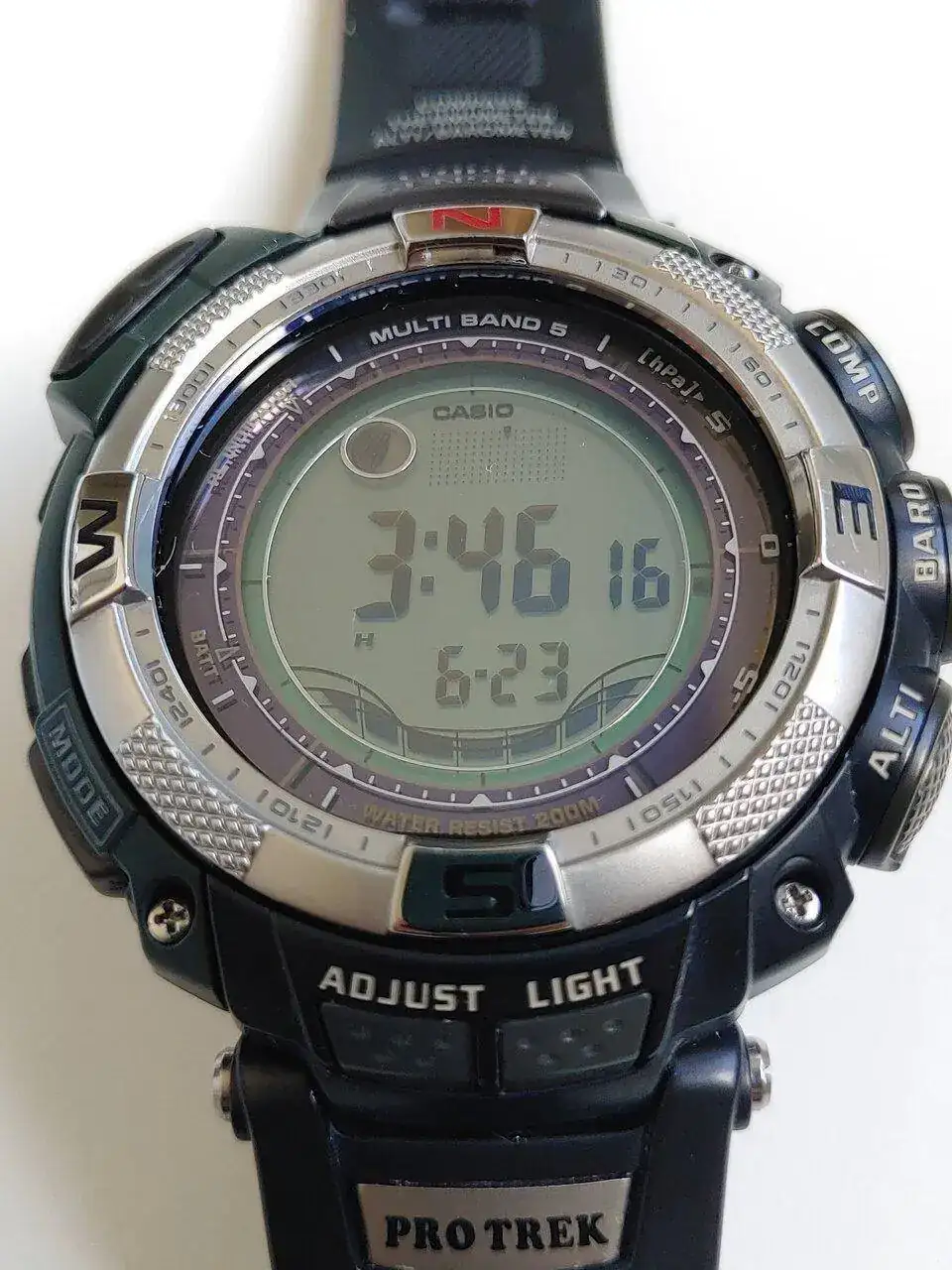Pongo a la venta este Casio Pro-Trek 3134 PRW – 1500 1VER. El reloj ha sido utilizado en contadas ocasiones para practicar deporte. Tiene algún rasponcillo en la correa de resina y en el bisel (punto cardinal Este / E), pero en general está en muy buen estado –no he conseguido ver nada más--. Las funciones son muy completas y podéis echarles un vistazo en este enlace: https://www.baroli.es/reloj-casio-pro-trek/prw-1500/