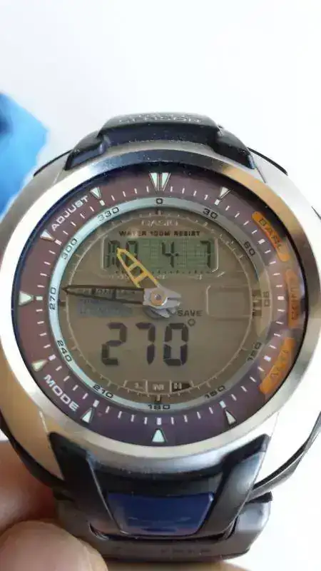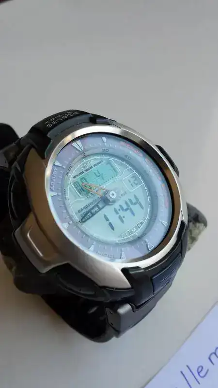 Pregunté al servicio técnico de Casio que costaría cambiar el cristal, pero me dijeron que habría que cambiar la caja, y que además estaba descatalogado. A pesar de ello sigue estando en venta y es una auténtica máquina, a la vez que uno de los más bonitos emho. Pesa muy poco y es muy cómodo en la muñeca.