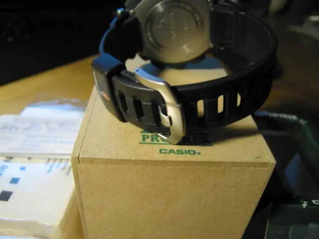 No tiene marcas ni golpes apreciables, salvo algunas marquitas en las zonas pulidas del bisel, donde están indicados los puntos cardinales. Para ser un Pro Trek es especialmente robusto, es de los pocos 20 Bar WR