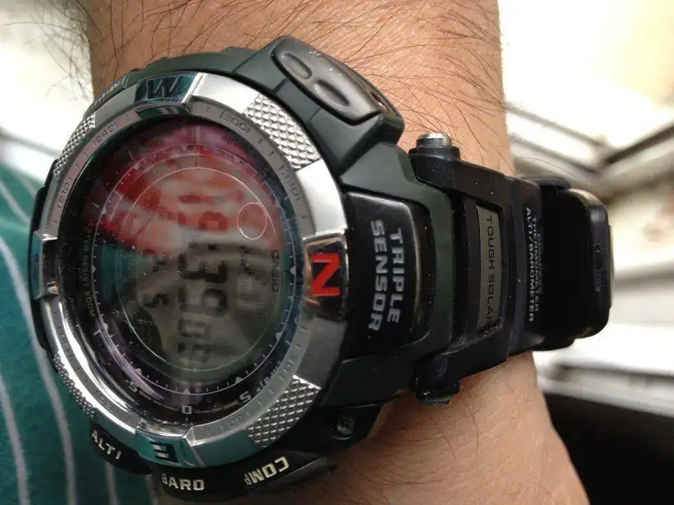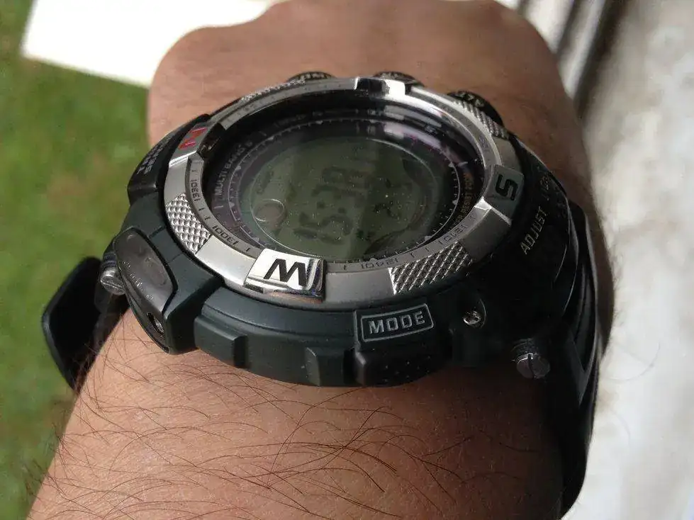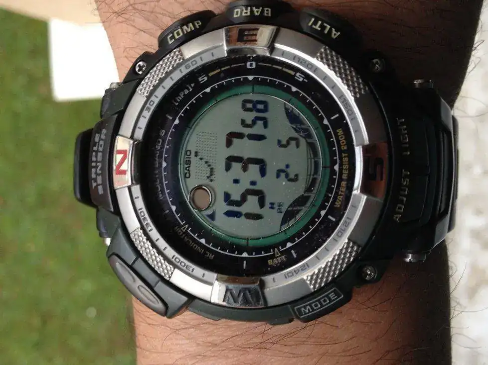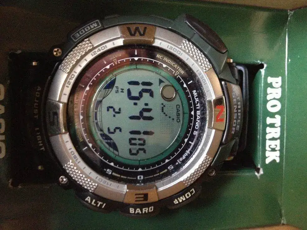 Este magnifico reloj multifunción tiene entre otras muchas funciones Radio control, funcionamiento con energía solar, altímetro, barometro, termómetro, brújula digital, indicador de marea alta y baja, indicador de fases lunares, resistente al aguas hasta 20 bar, ETC,ETC,ETC.