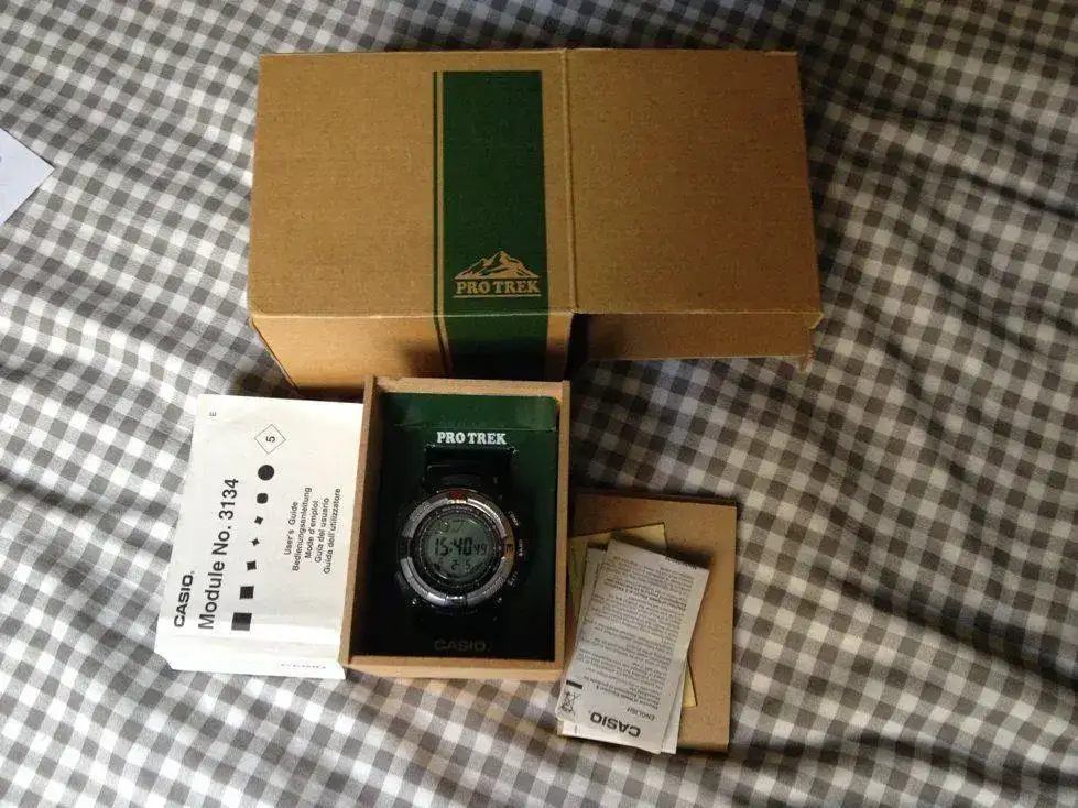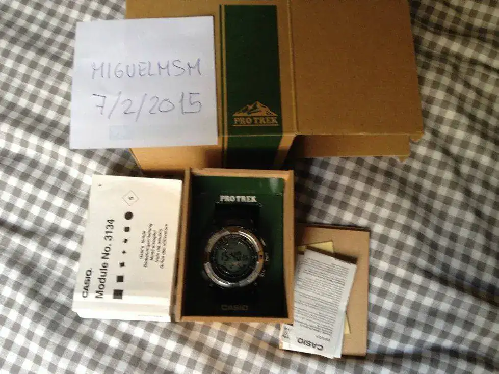 Saco a la venta este precioso CasioProtrek, en un estado muy bueno, tiene ligeras marcas de uso, que se pueden ver en las fotos, el cristal esta impecable y si se ve algo en las fotos , es alguna mota de polvo, que se quedo al limpiarlo con la gamuza.