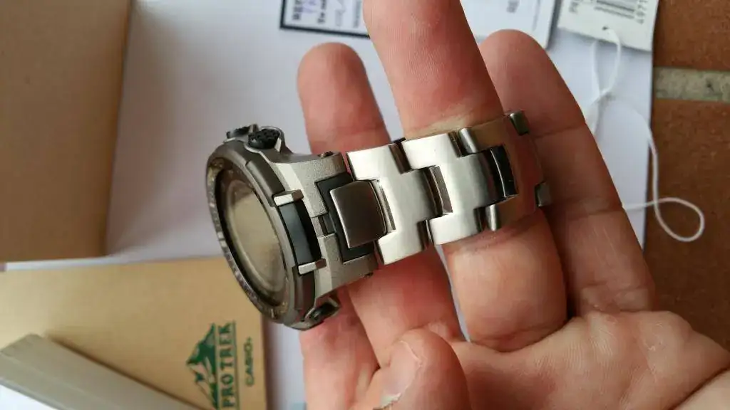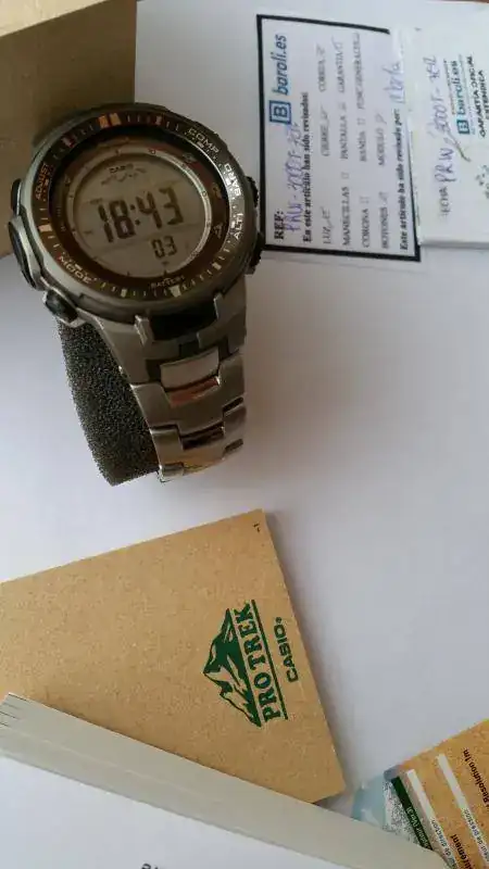 Saco a la venta este magnífico Casio Protrek con correa de Titanio, comprado en junio de 2015 en Baroli.es,el reloj me lo he puesto pocas veces, si es verdad que tiene los típicos pelillos en la correa de Titanio (este material se araña con solo mirarlo) como se aprecia en dos de las fotos.