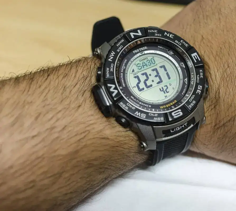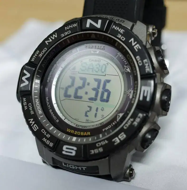 Es un Protrek de los modelos nuevos con el triple sensor nuevo V3, altímetro, barómetro y brújula y termómetro. Además es de los pocos con 200m de resistencia al agua. Solar y radiocontrolado que recibe señal a la perfección.